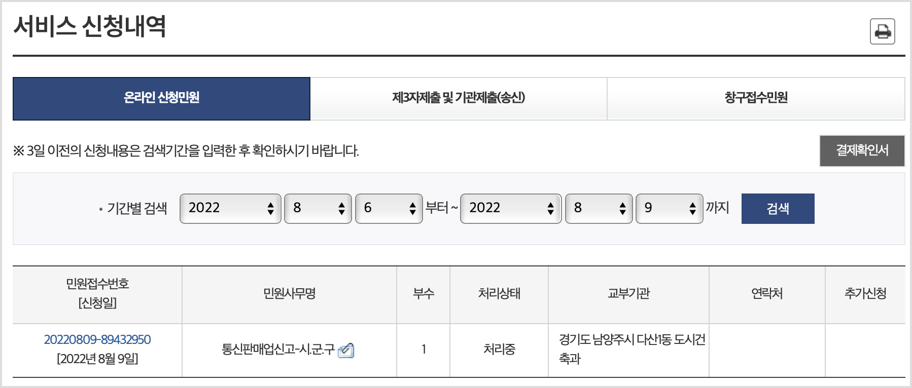 주민등록등본처럼 바로 발급받을 수 있으면 좋겠지만, 통신판매업 신고증은 처리하는데 시간이 좀 걸립니다.