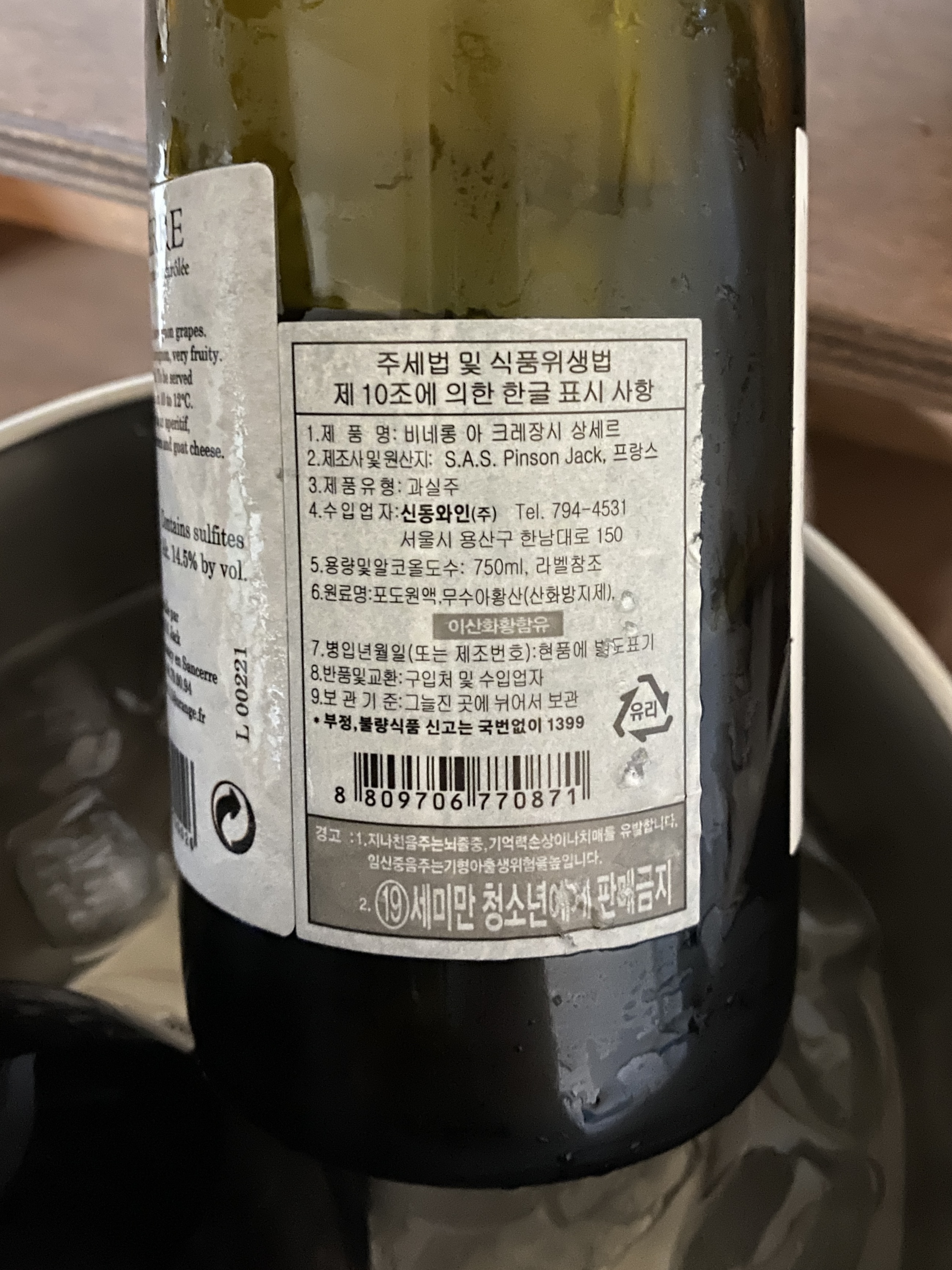 바로바로 ~ 비네롱 아 크레장시 상세르 라는 화이트 와인이었습니다.