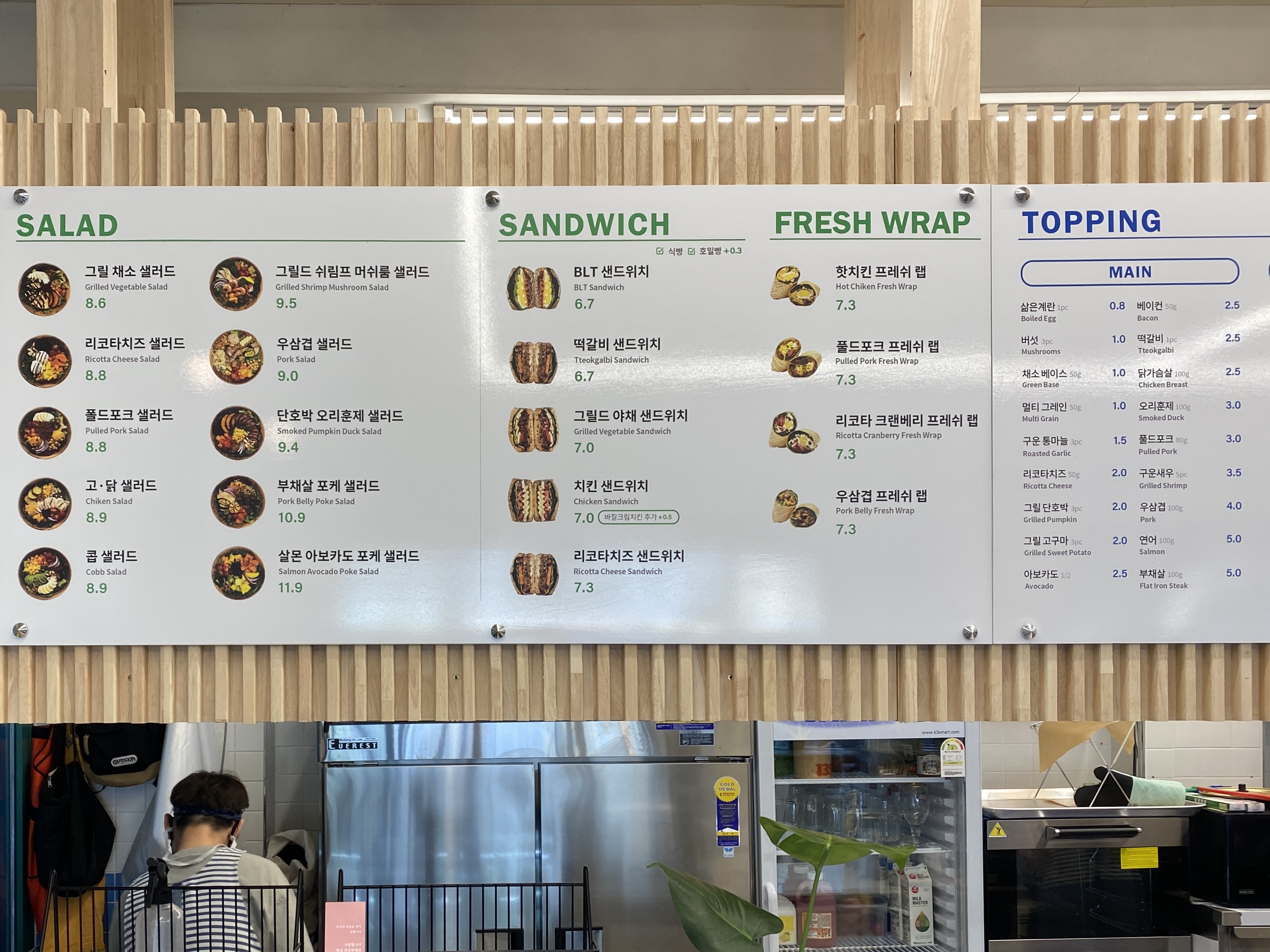 샐러드 / 샌드위치 / 프레쉬랩 3종이 있는데요, 샐러드보다는 샌드위치와 프레쉬랩이 좀 더 끌렸어요.