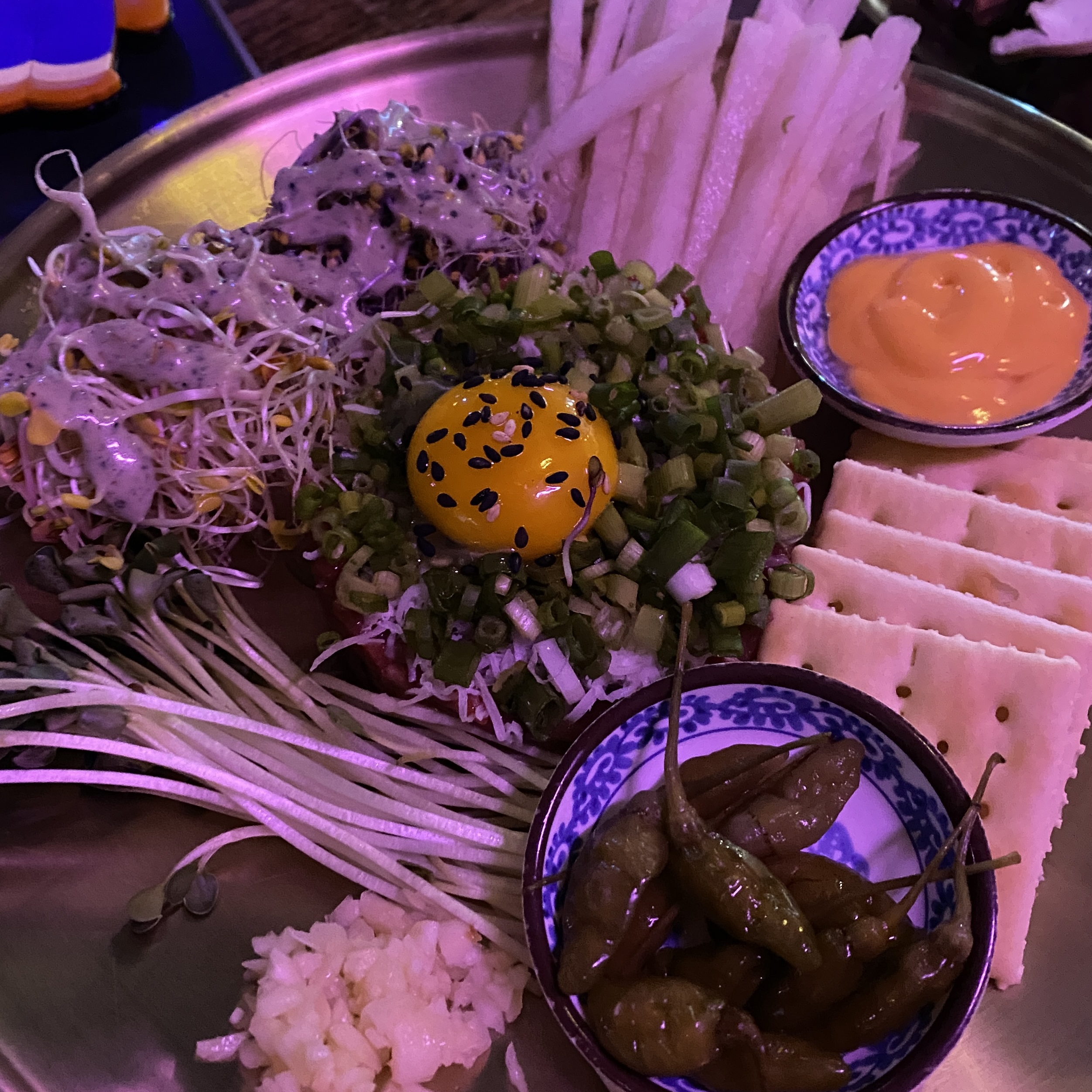 육회와 야키니쿠 세트를 주문했어요. 요 안주가 메인안주라고 하네요!
