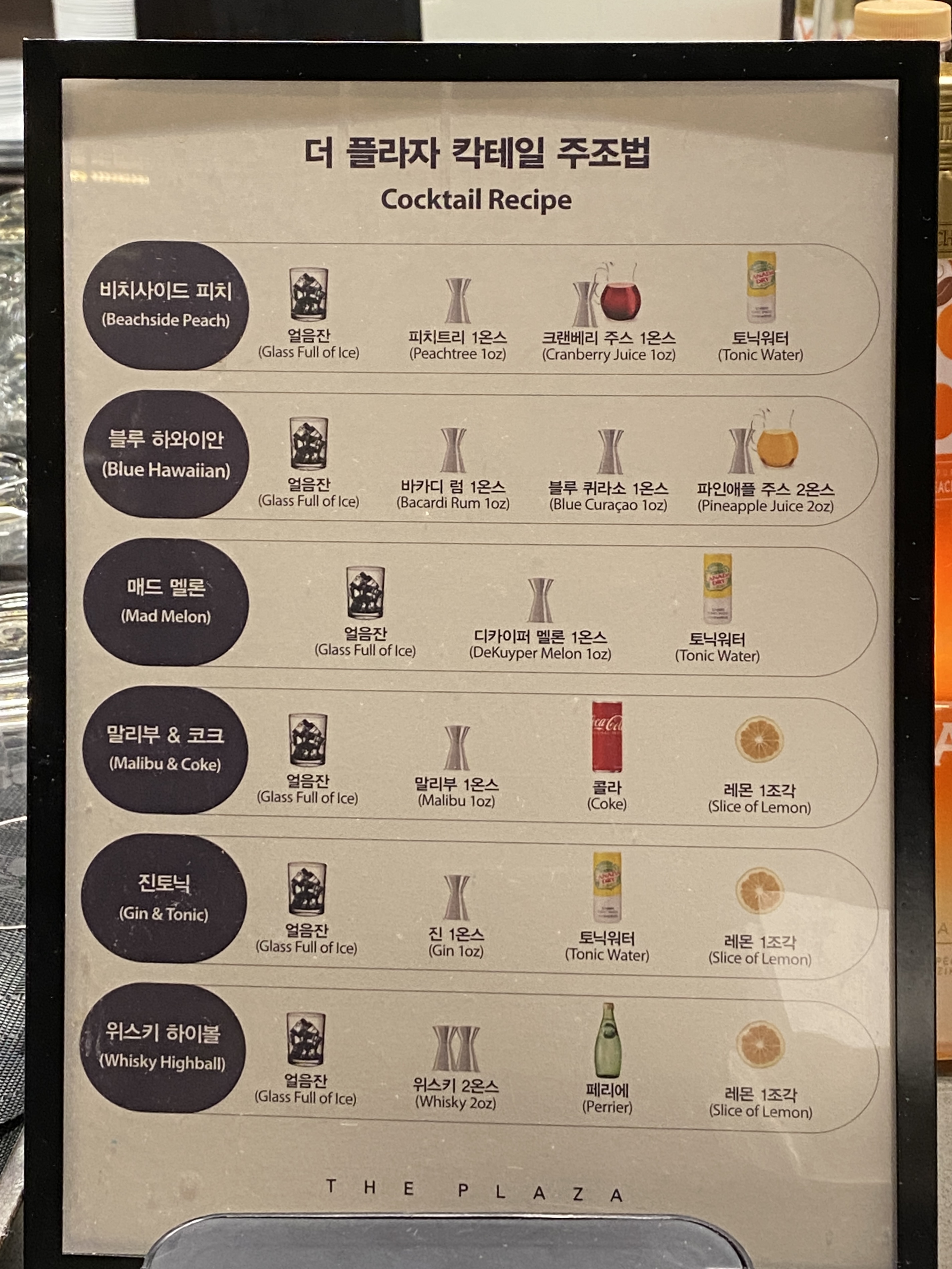 칵테일 주조법을 몰라도, 옆에 적혀있기 때문에 따라서 만들면 됩니다.