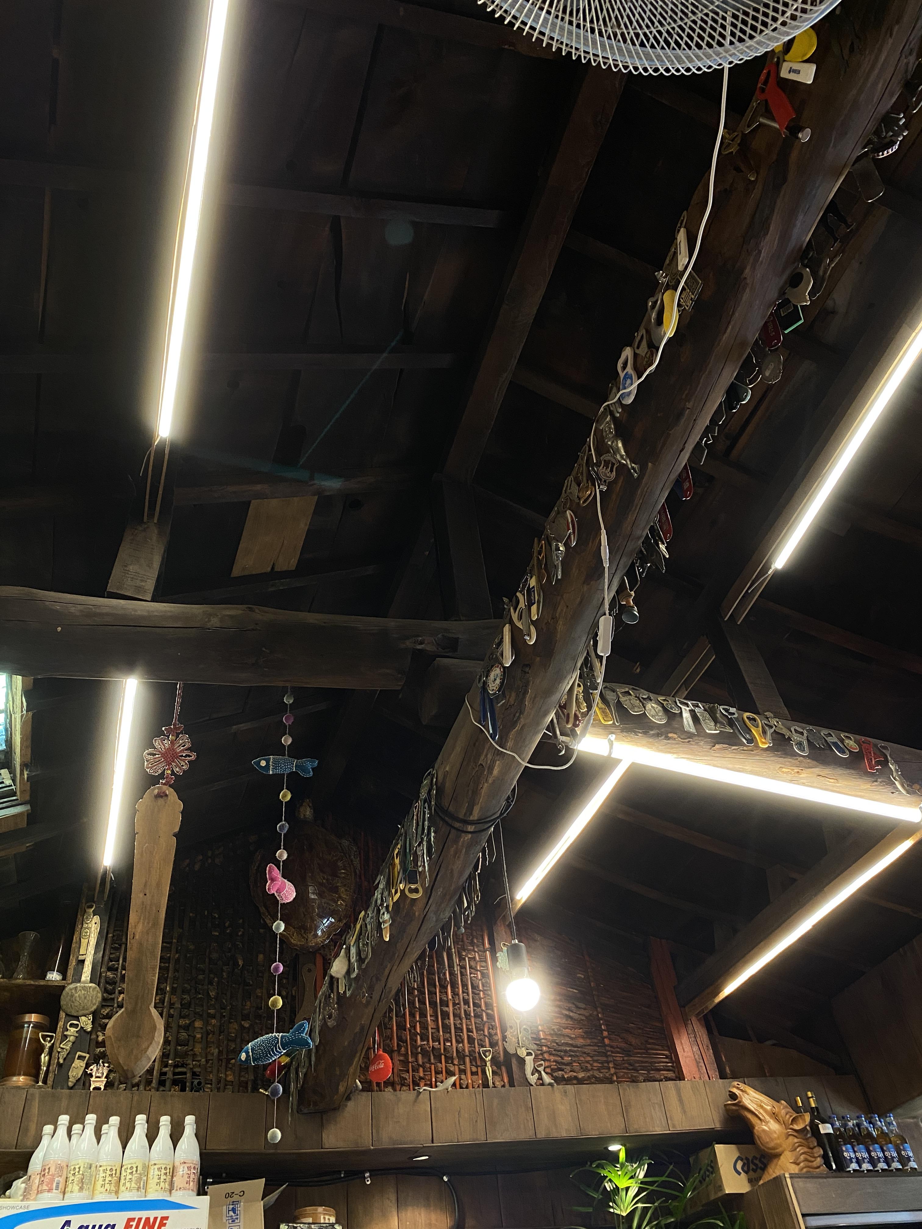 천장에는 수집하신 병따개들을 걸어두었어요.