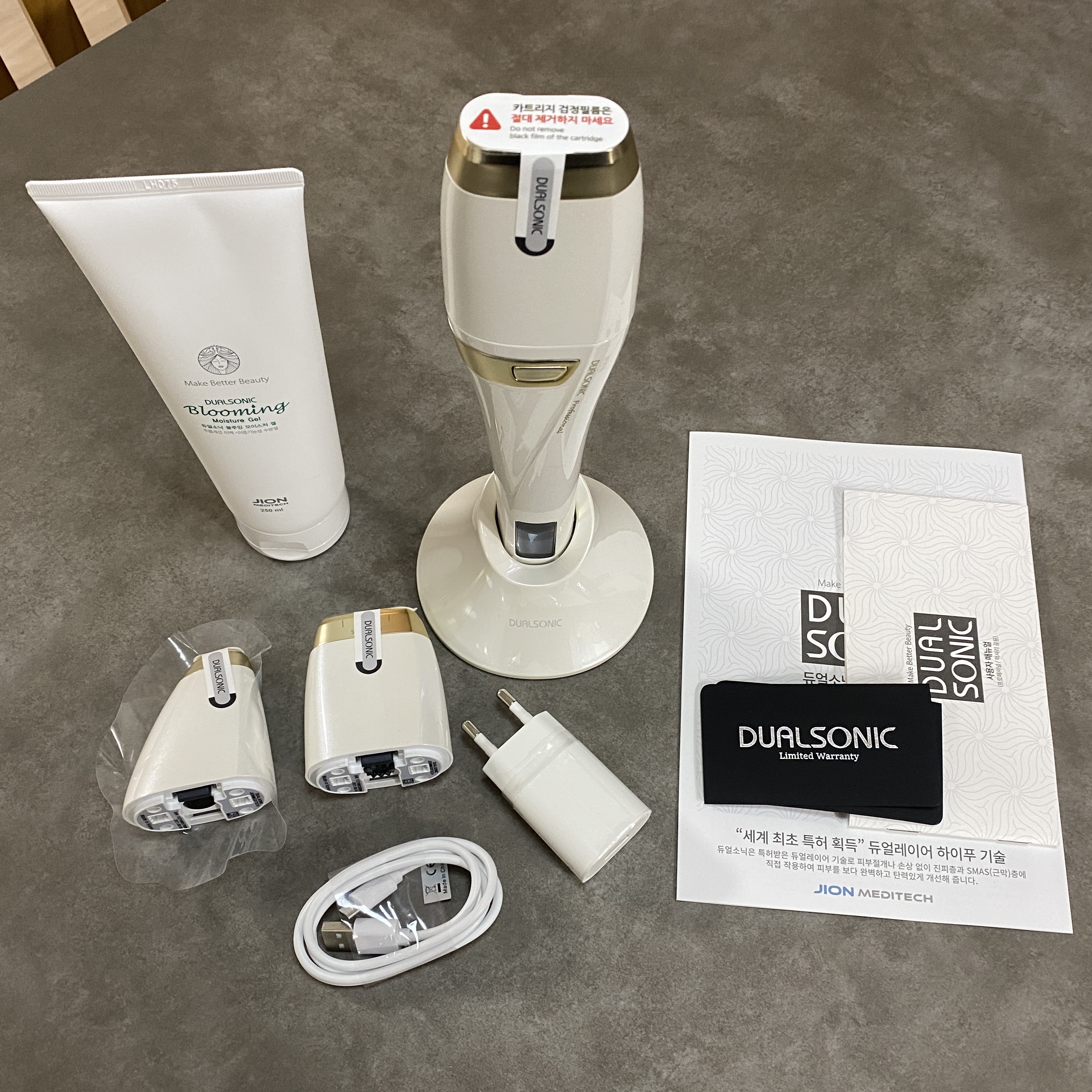 메뉴얼과 충전기, 젤이 나왔다.