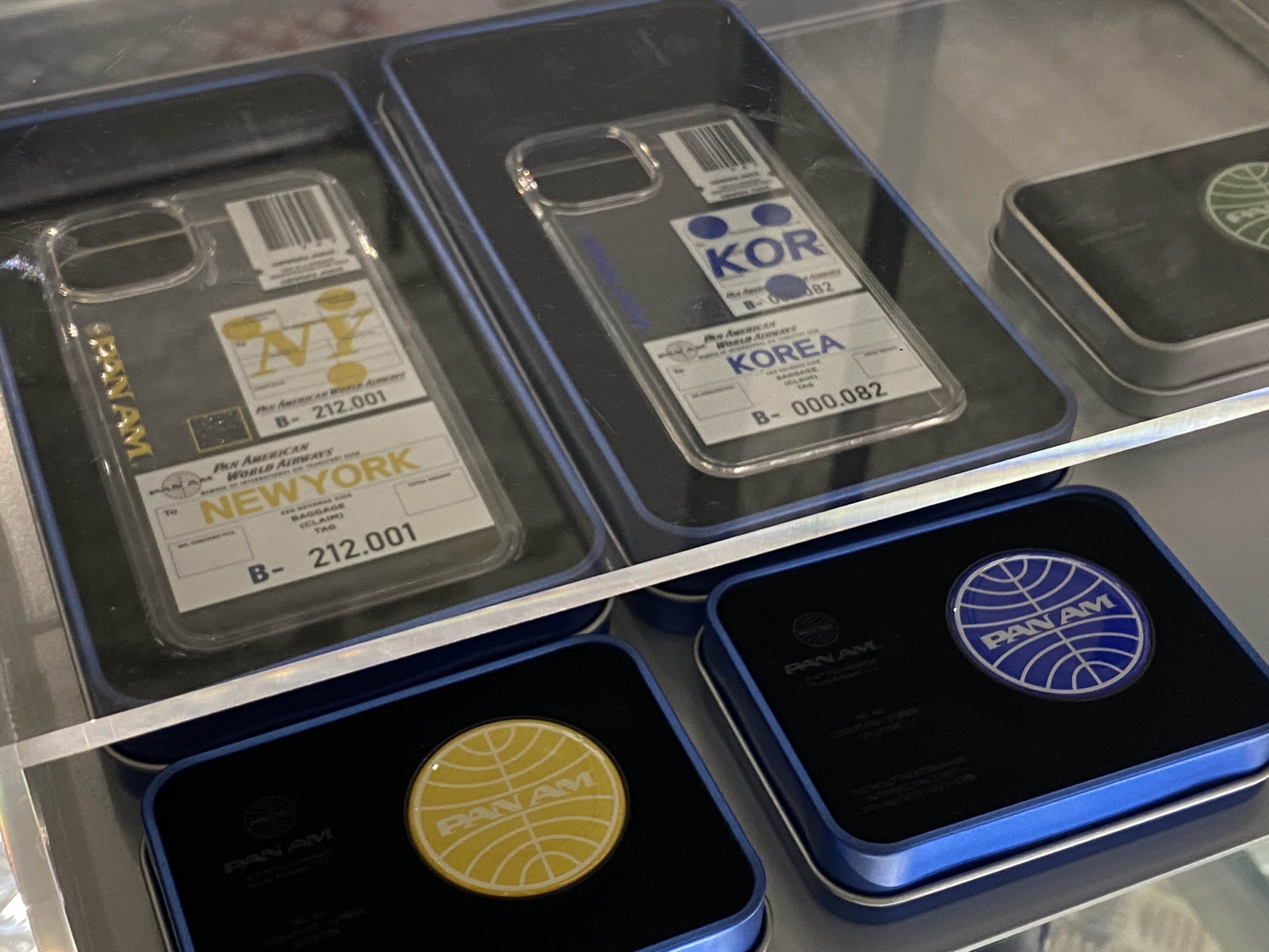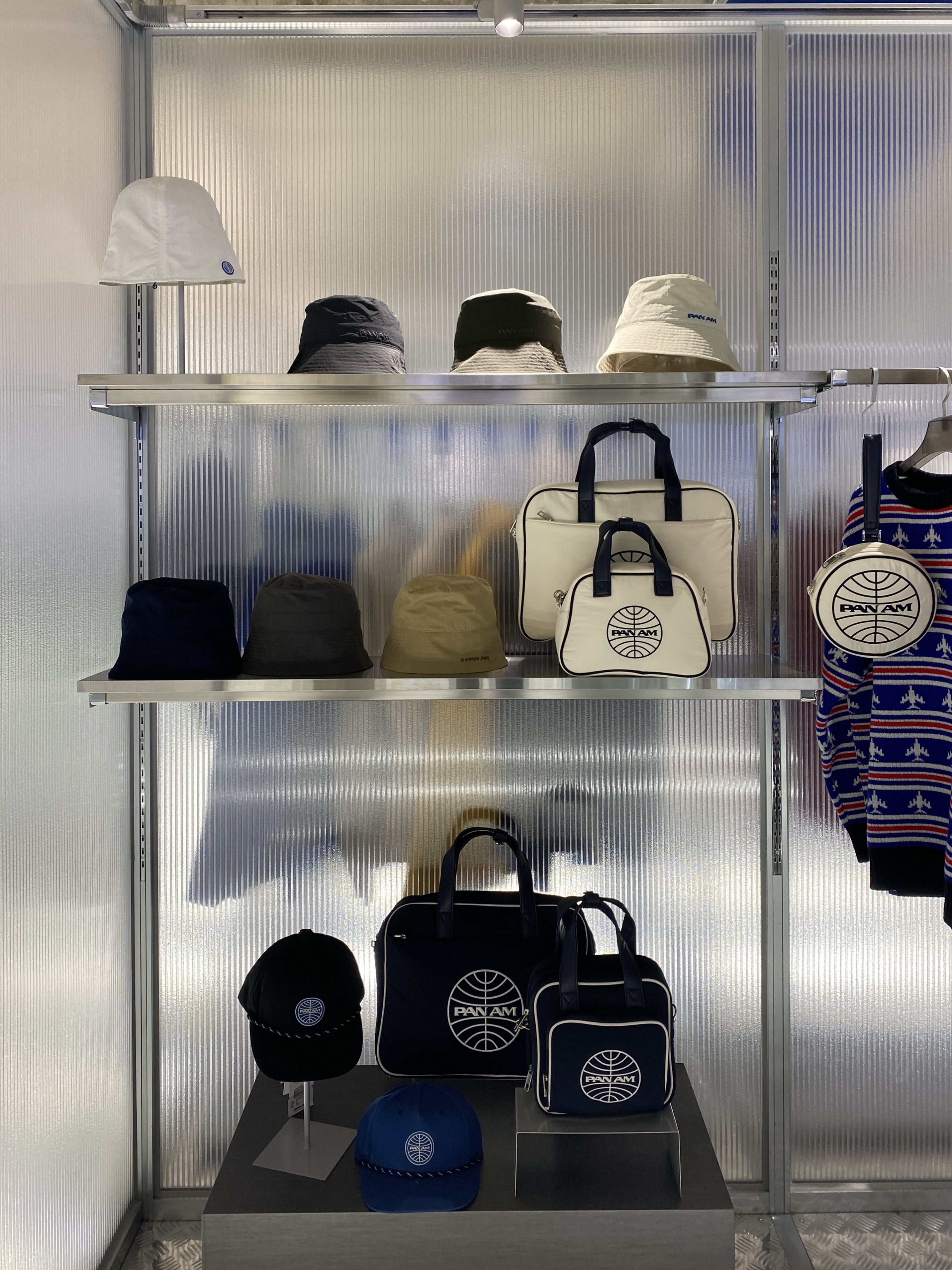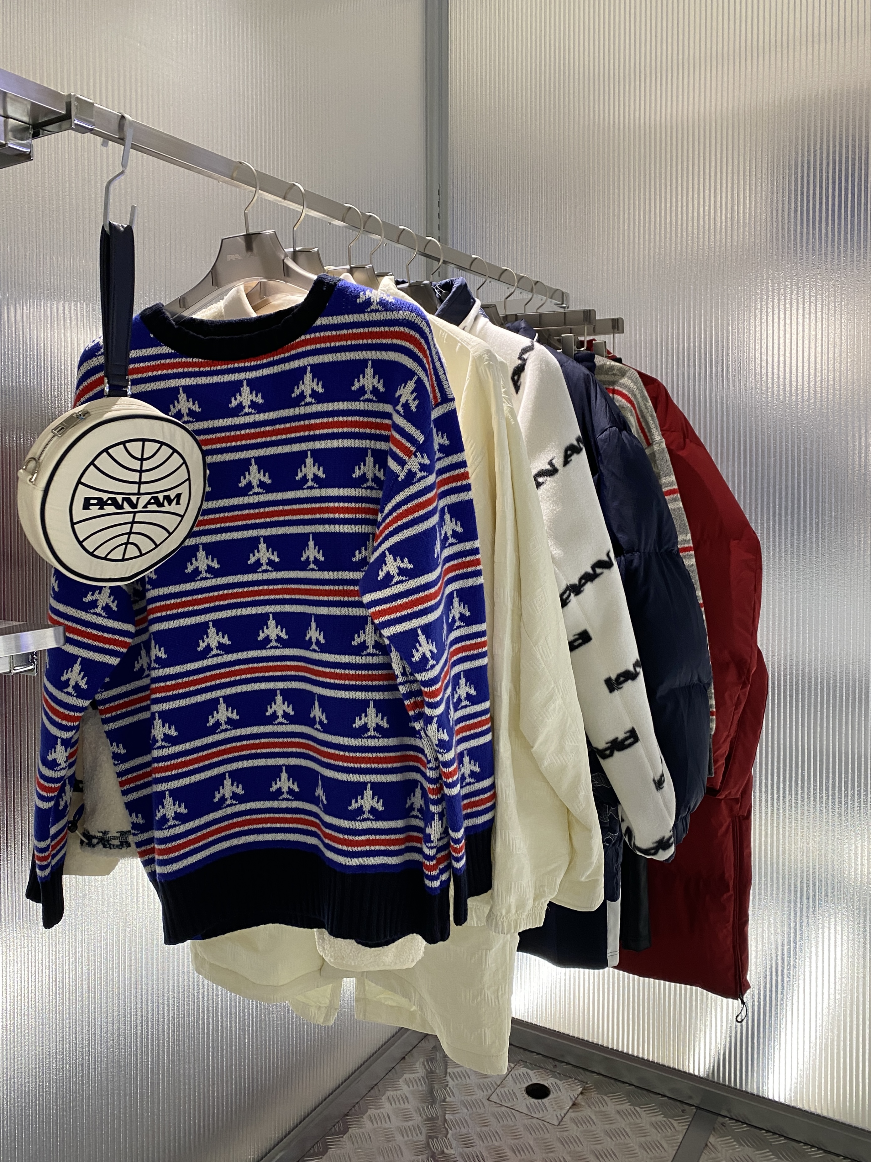 상징적인 팬암 로고를 활용한 패션아이템들이 많았는데요,