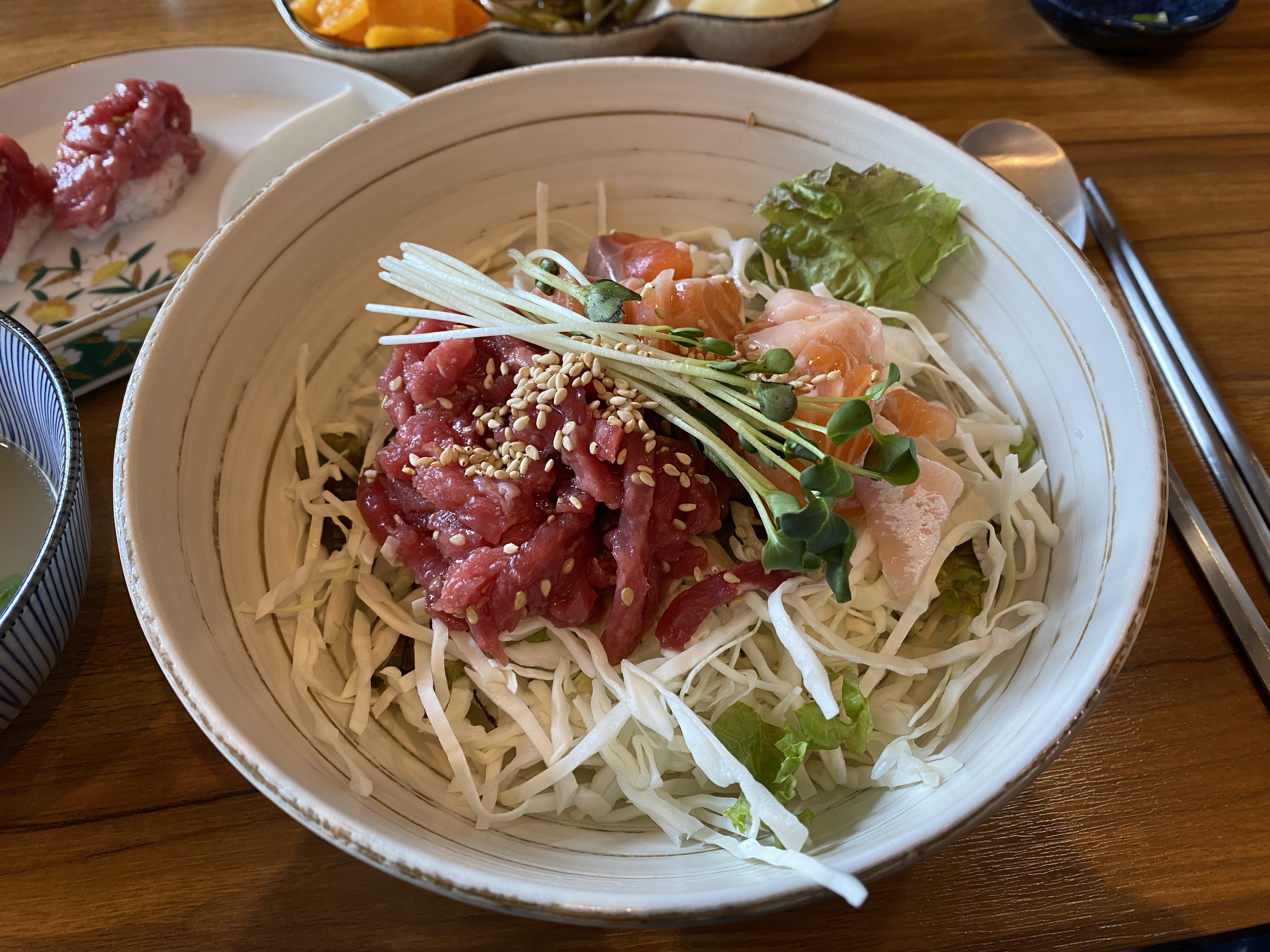 육회 연어 비빔밥도 맛있었지만, 육회초밥이 진짜 맛있었던 것 같아요.
