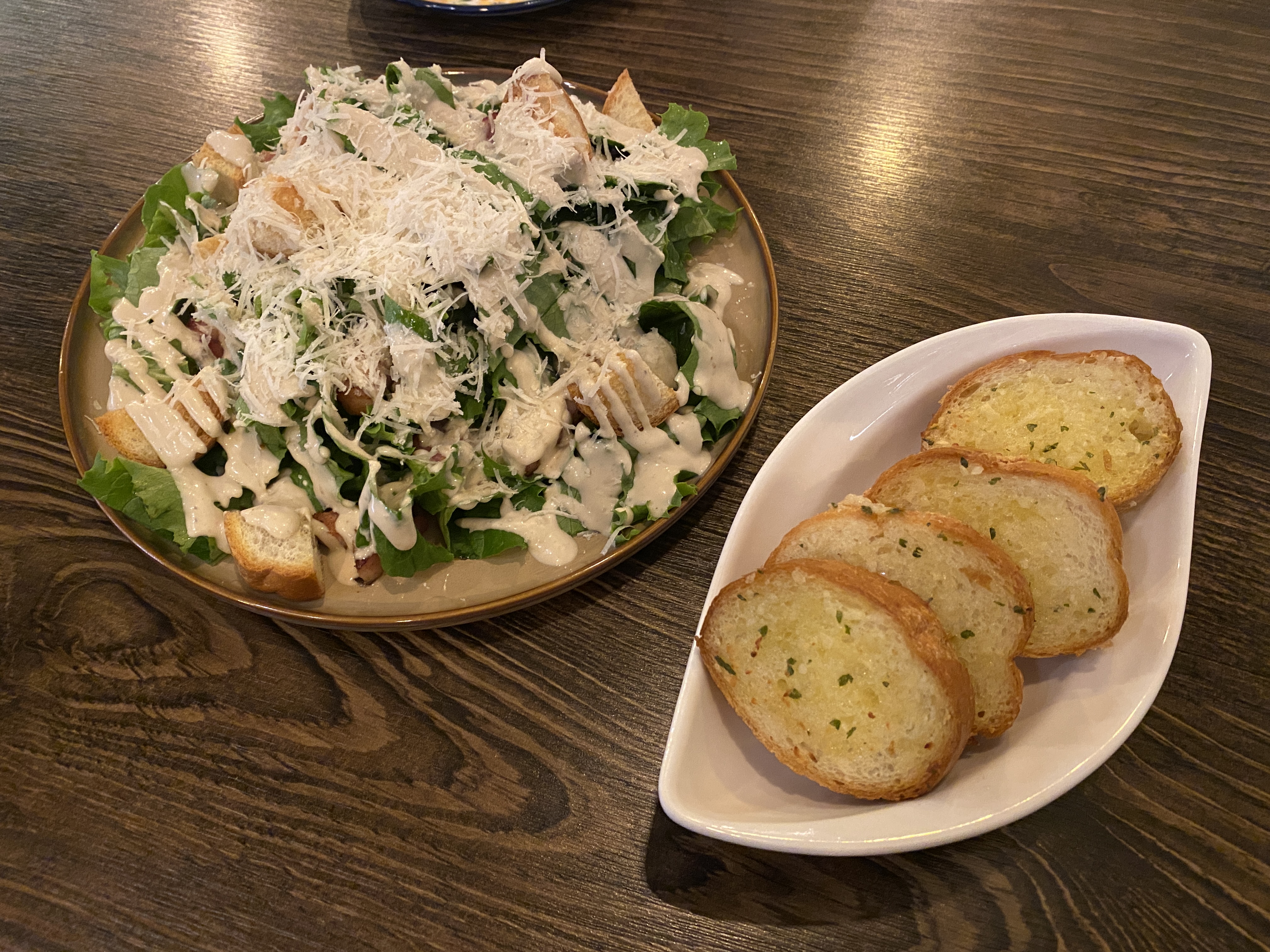 마늘빵 4개가 기본으로 나오는 시저샐러드