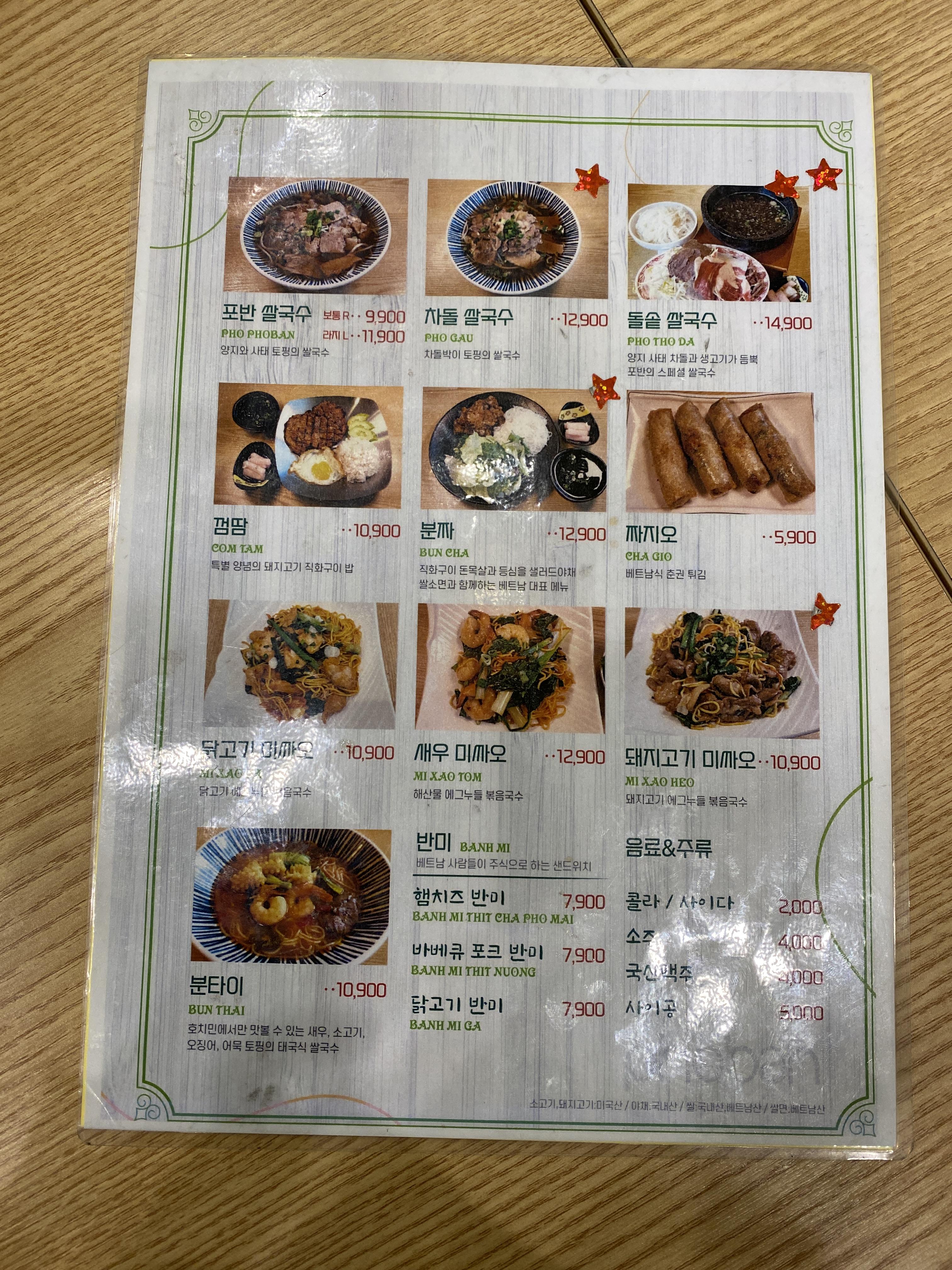 쌀국수 1만원, 분짜 13,000원으로 베트남 음식 전문점치곤 비싼 가격대는 아니였어요.