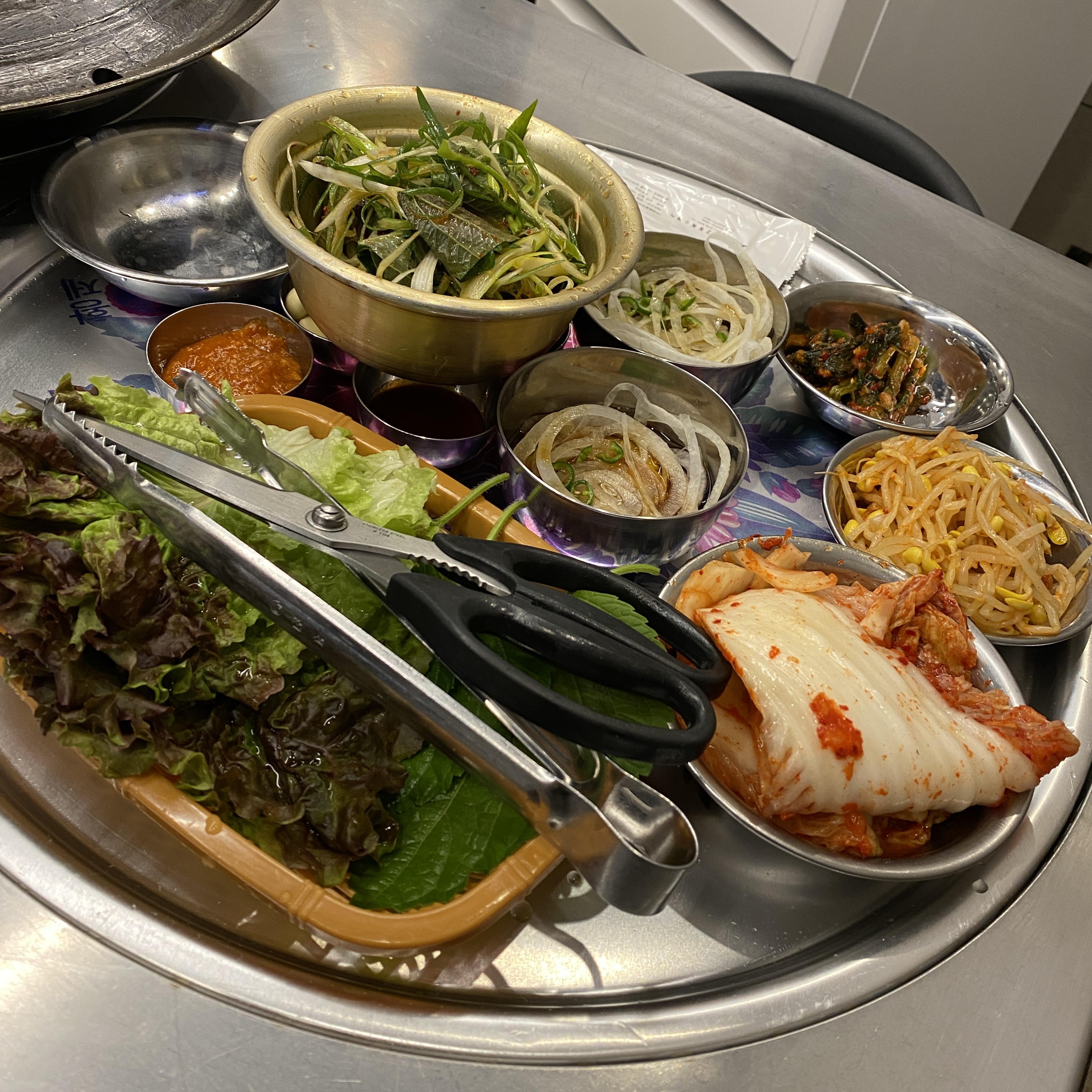 고기와 같이 구울 수 있는 김치, 파채, 콩나물을 빼면, 반찬이 많은 편은 아니었어요.