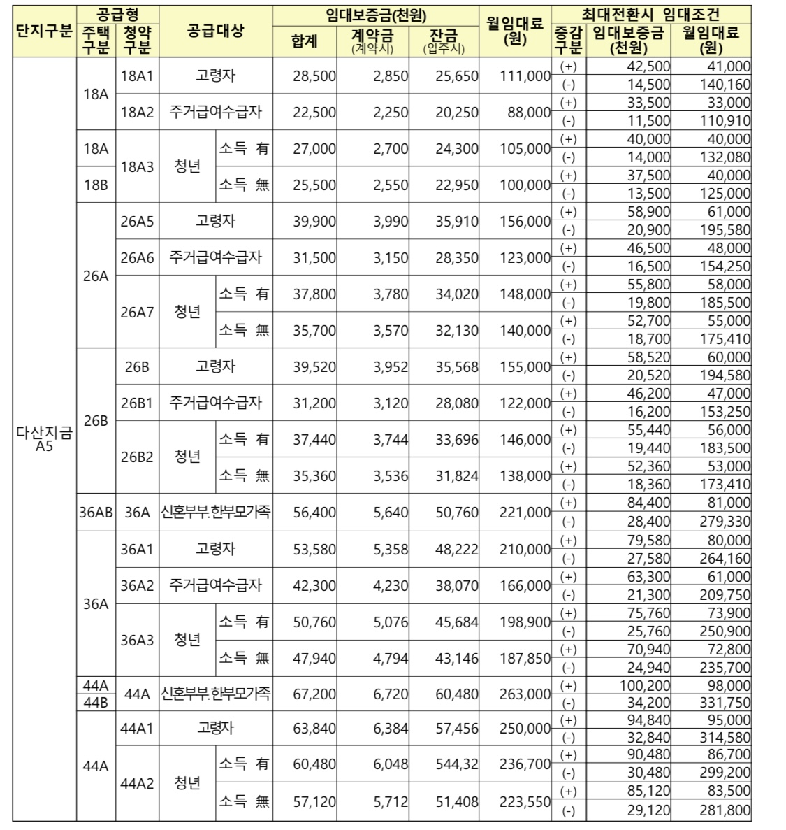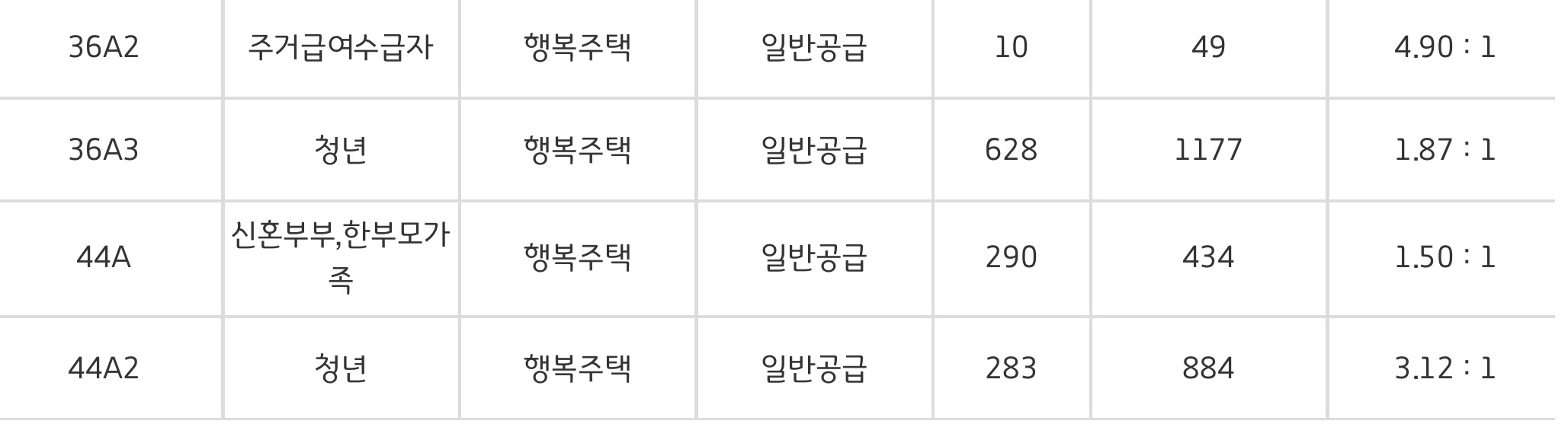 청년형은 18형, 26형, 36형, 44형이 있다. 36형과 44형 중 고민했는데, 그래도 경쟁률이 낮은 청년 36A형으로 최종 결정했다.