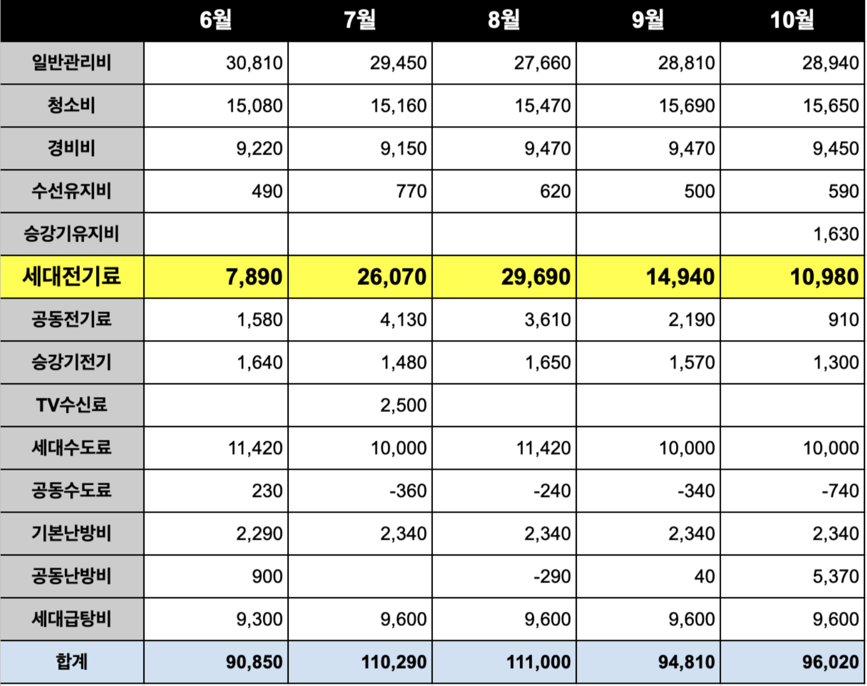 창문형 에어컨을 틀기 시작한 6월 말부터 전기료가 올라가기 시작했습니다.