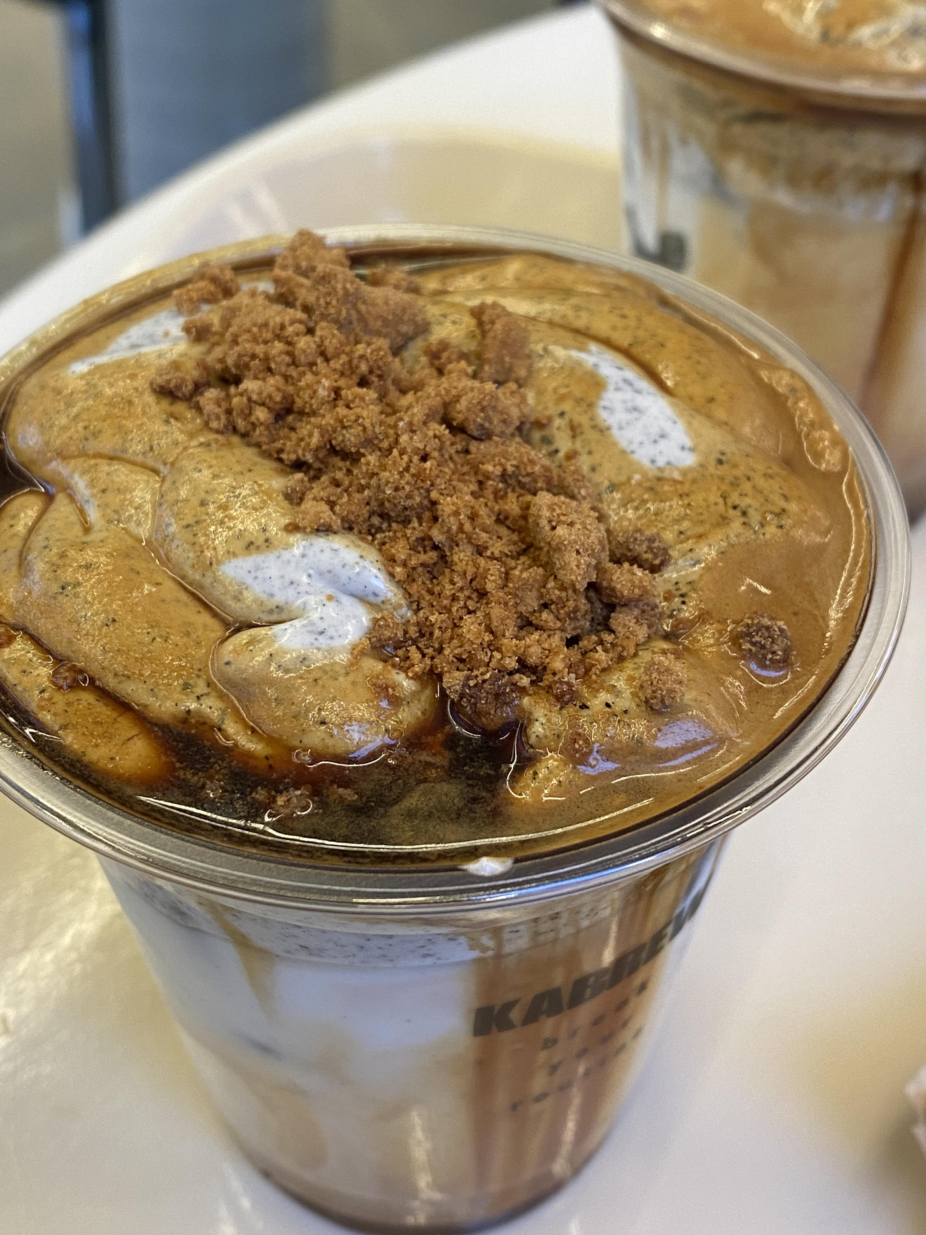 라떼 위에 고소한 흑임자 크림이 가~~~~득 들어있어요.