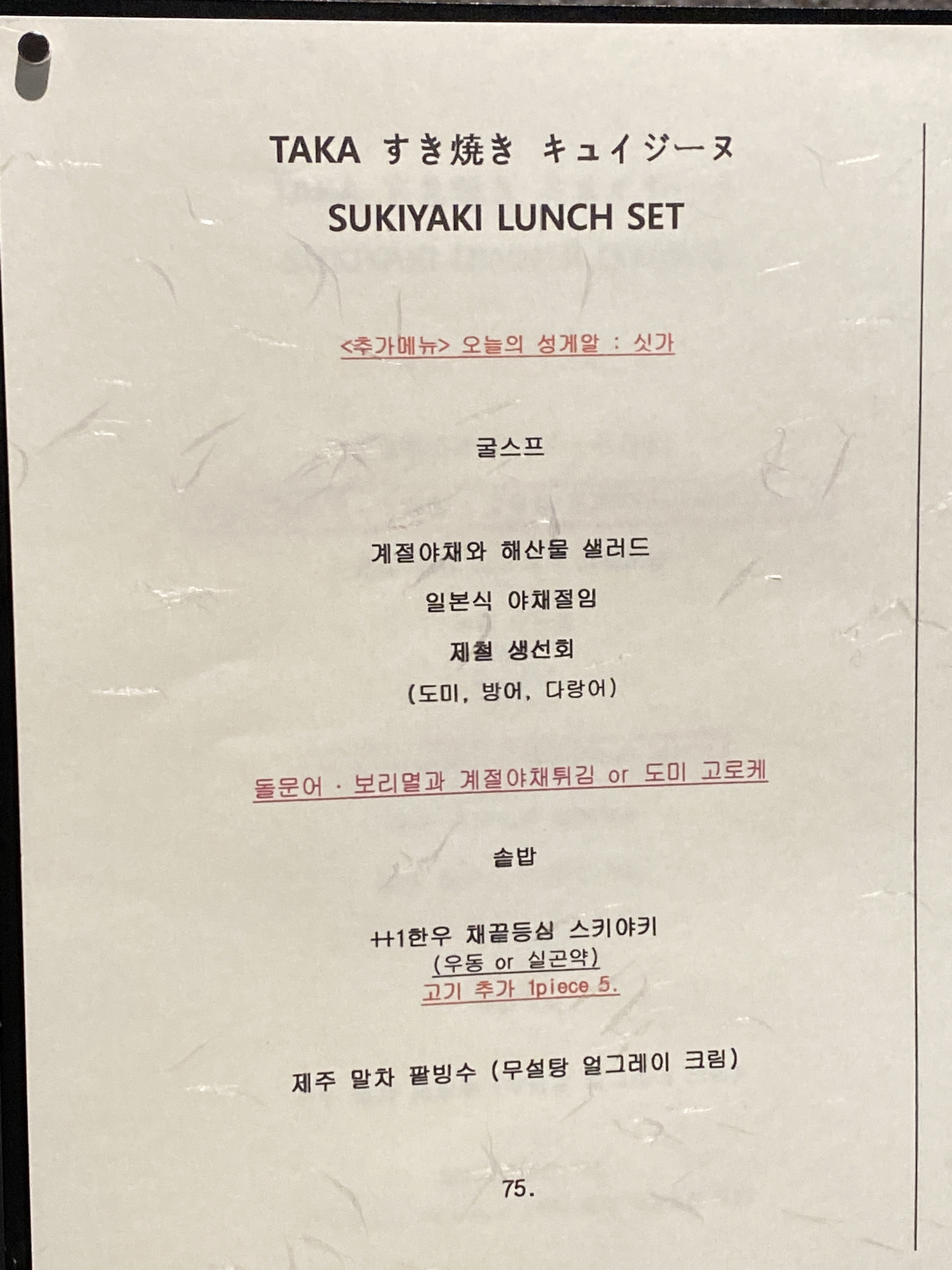 타카에서는 한우 스키야키 정식을 런치/디너 코스로 팔고 있었는데요.