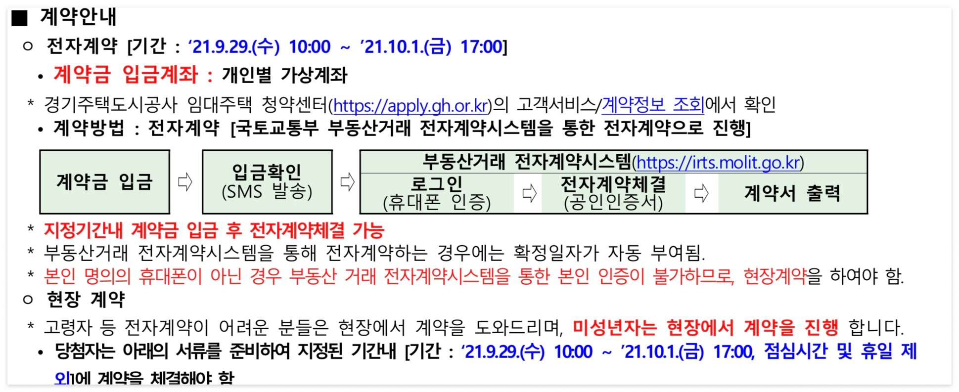 알아서 9월 말에 계약금 입금하고 사이트에서 전자계약하면 된다 고 합니다.