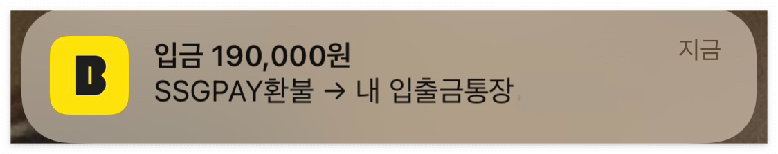 바로 입금되진 않아요. 30분 정도 기다리니 입금 알림이 왔습니다.