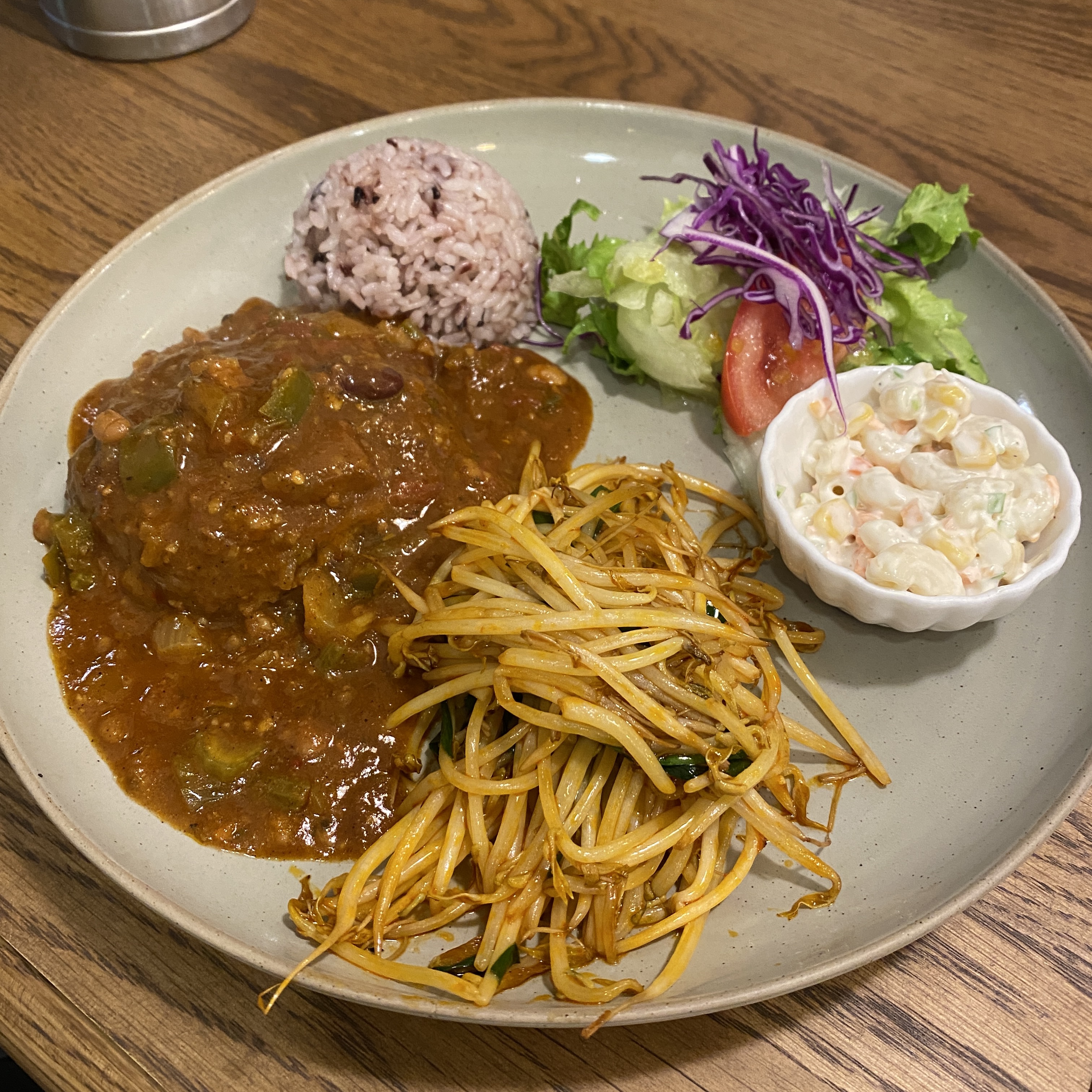 남편은 토마토 칠리 함박스테이크에, 사이드로는 숙주볶음을 주문했습니다.