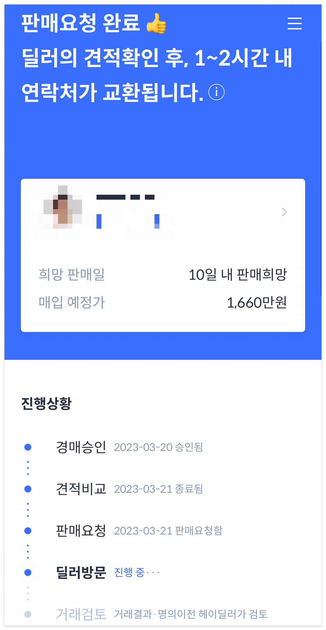 딜러의 연락처를 받고, 방문예약을 잡기까지 약 3일 정도 소요되었습니다.