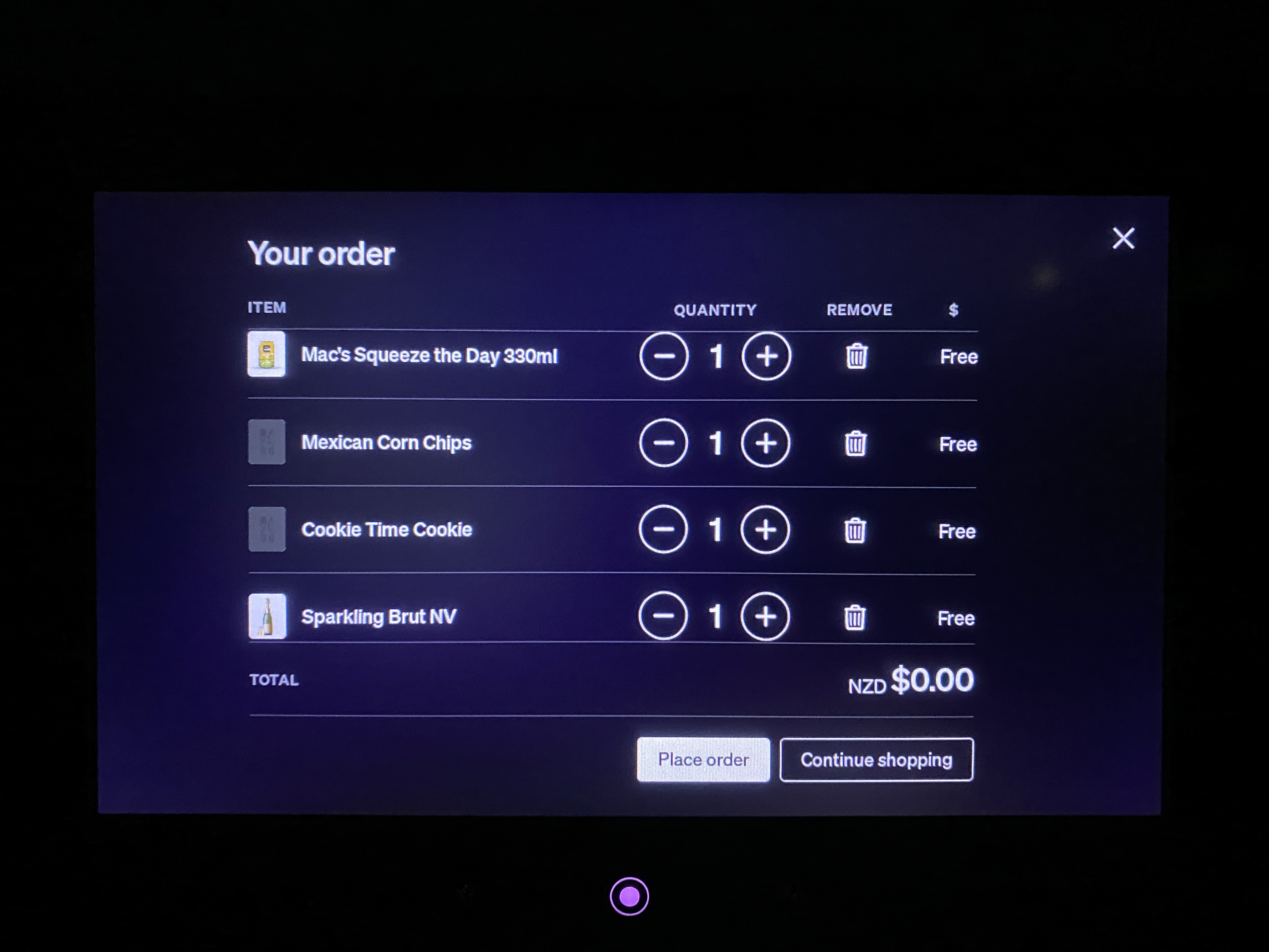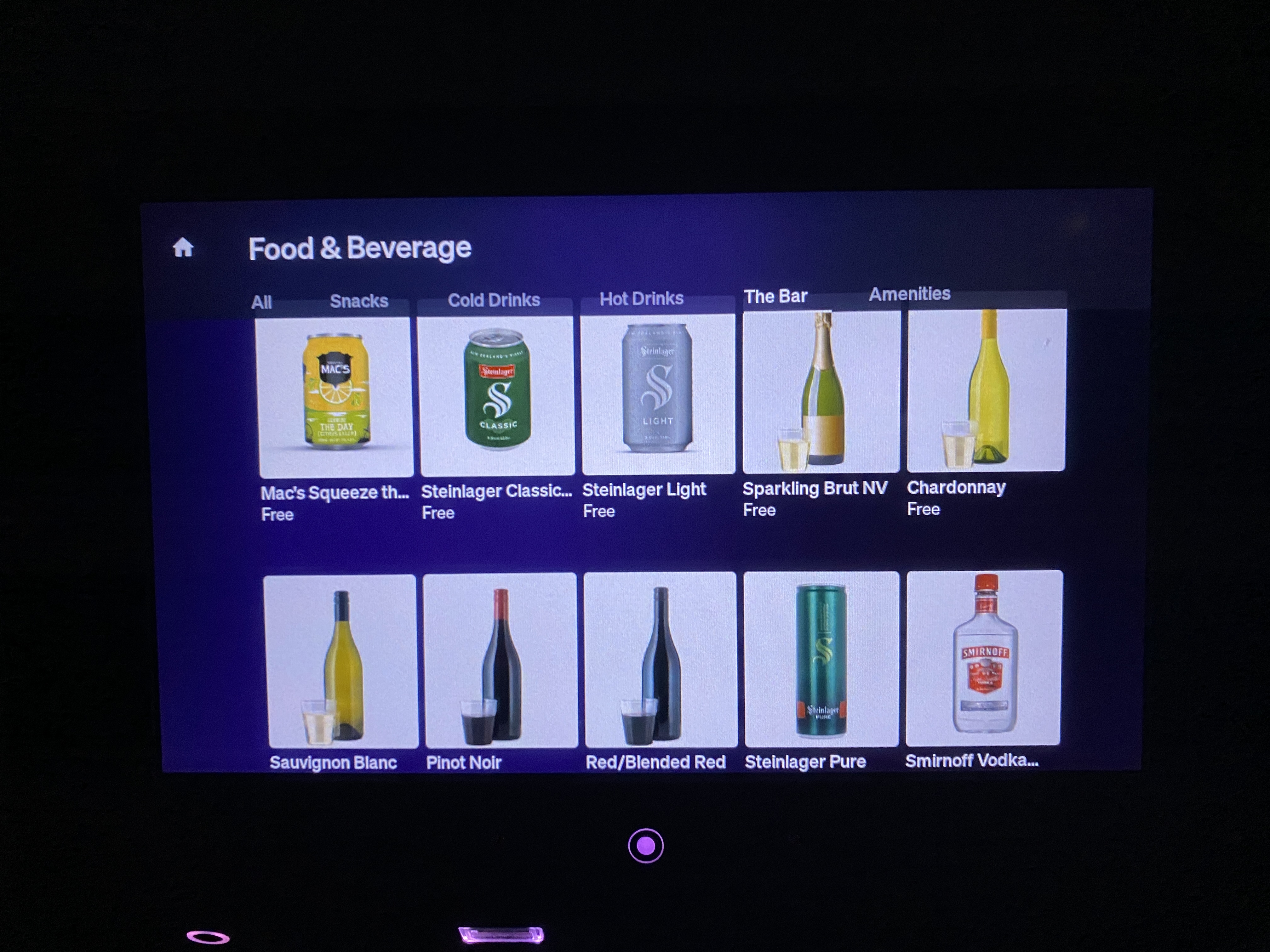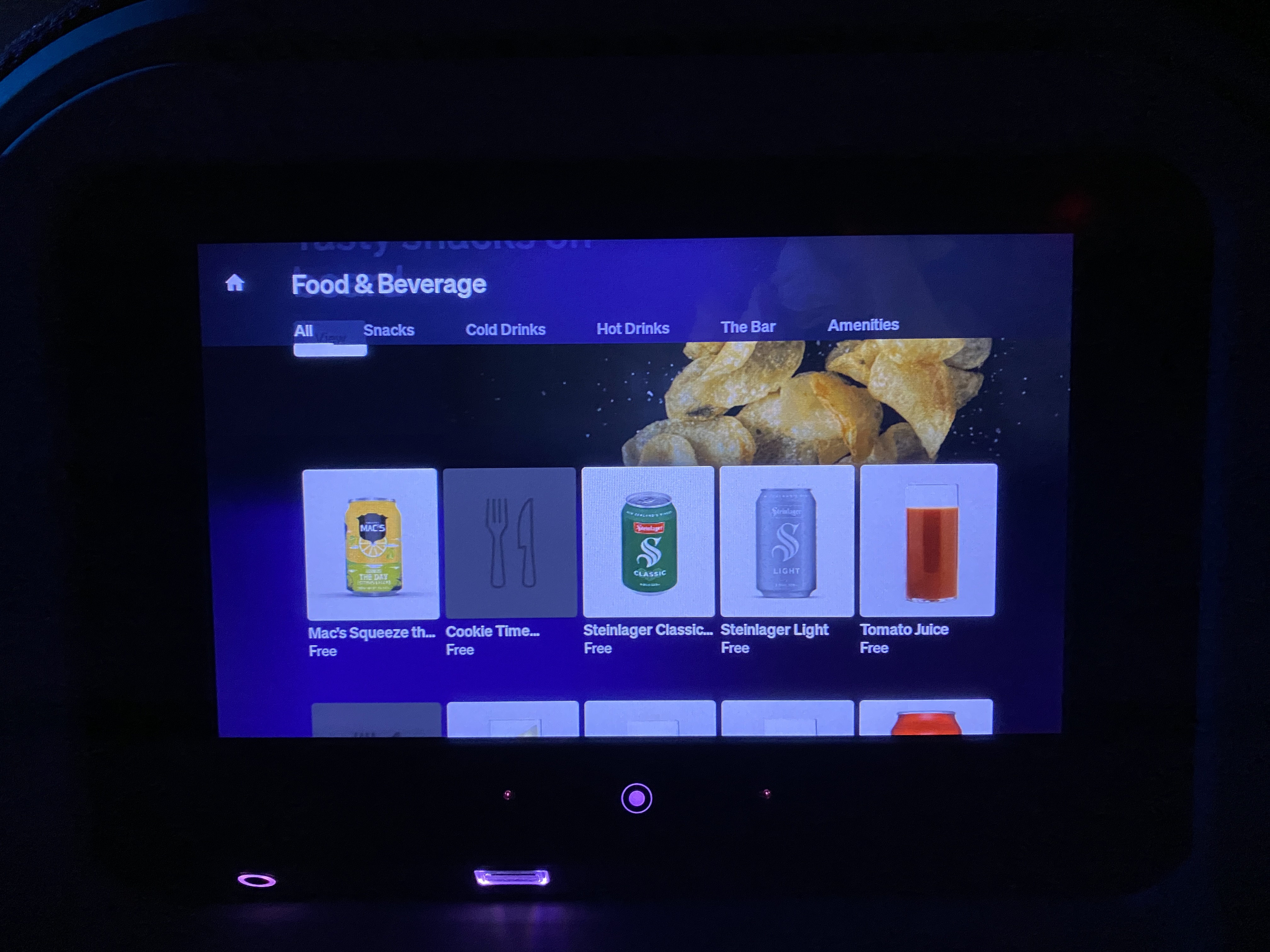 맥주, 스낵, 음료, 물, 심지어 이어플러그, 안대, 칫솔까지도 주문이 가능해요!