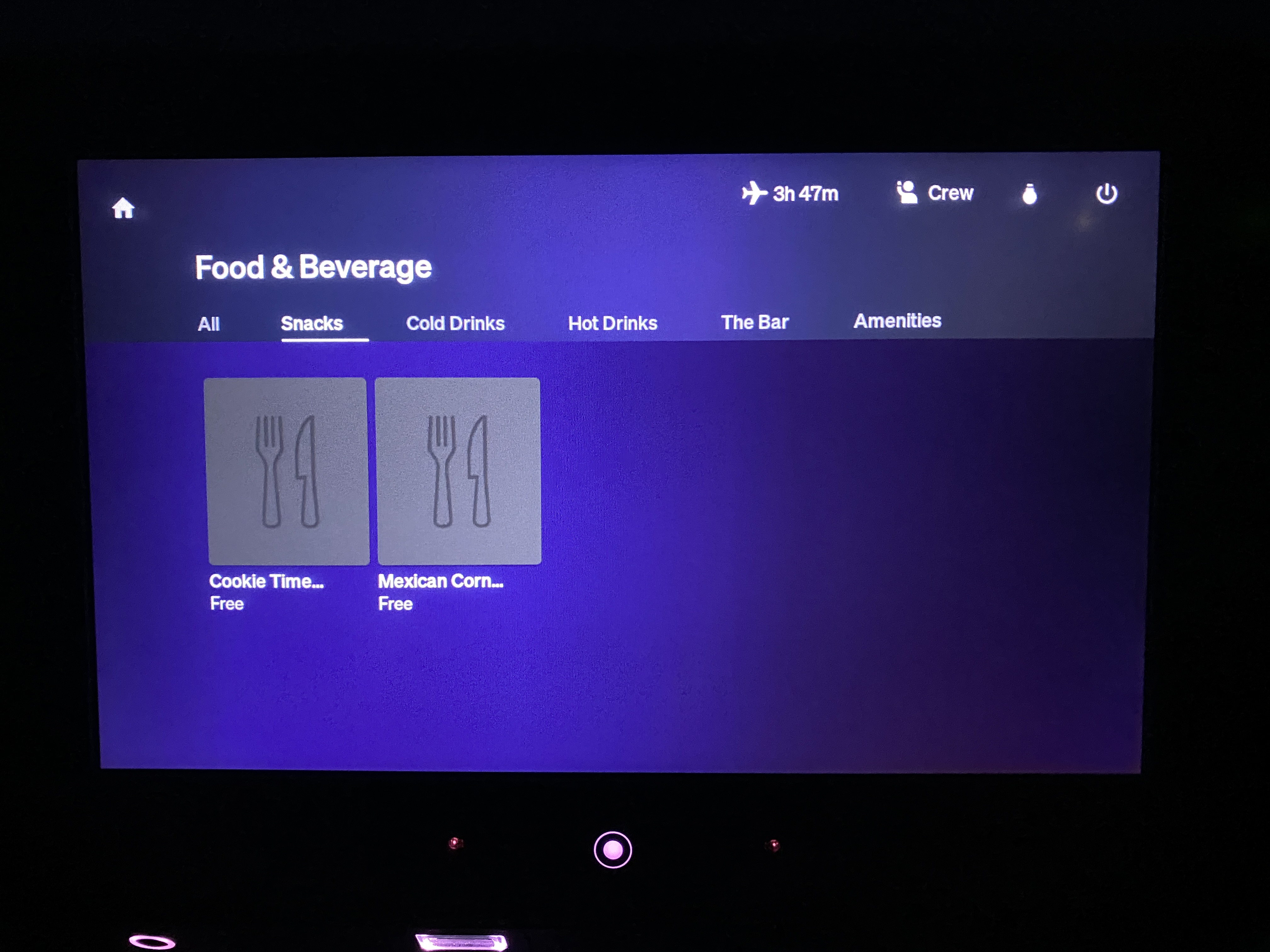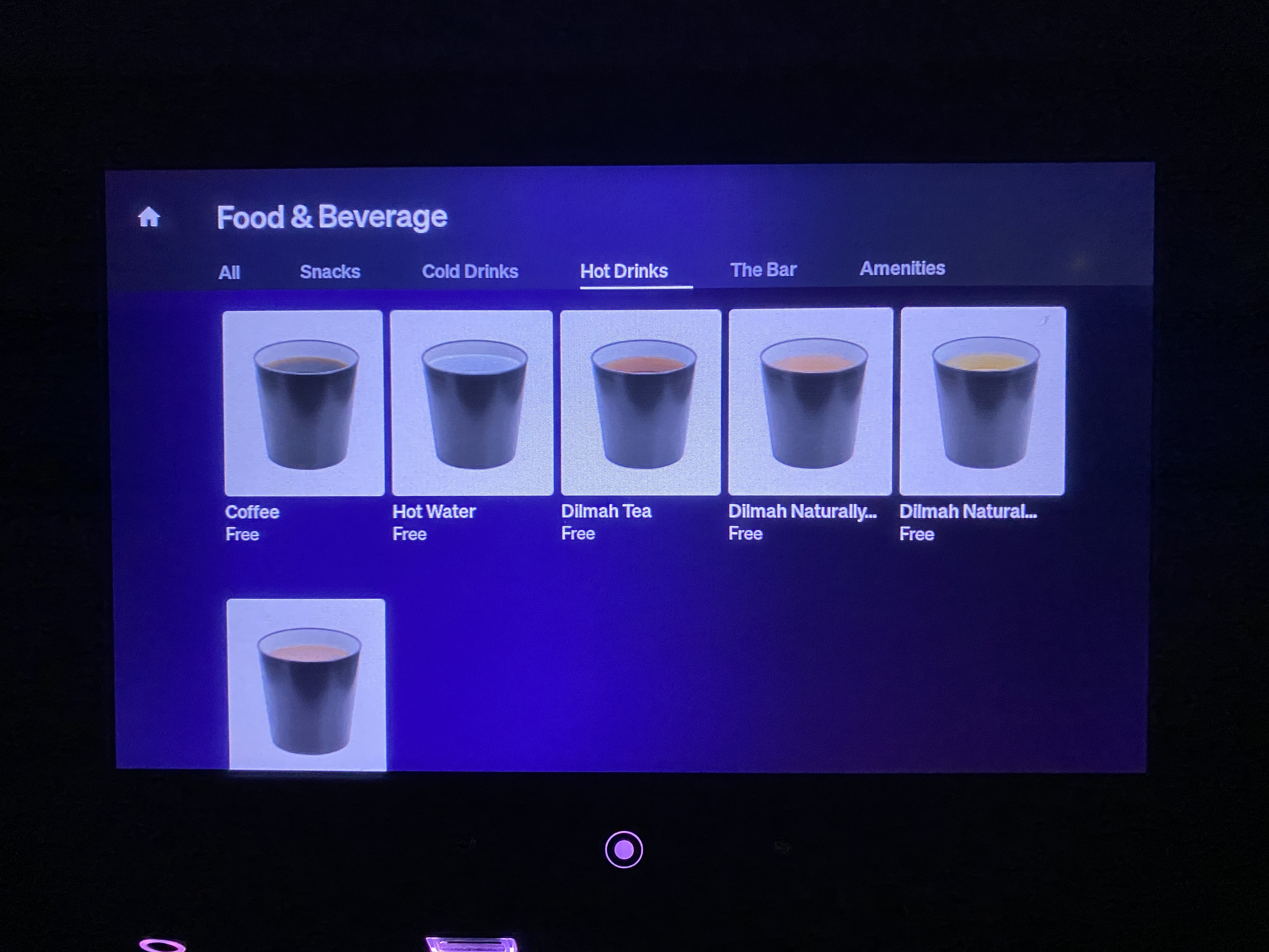 출발할 때 Food & Drink 라는 메뉴는