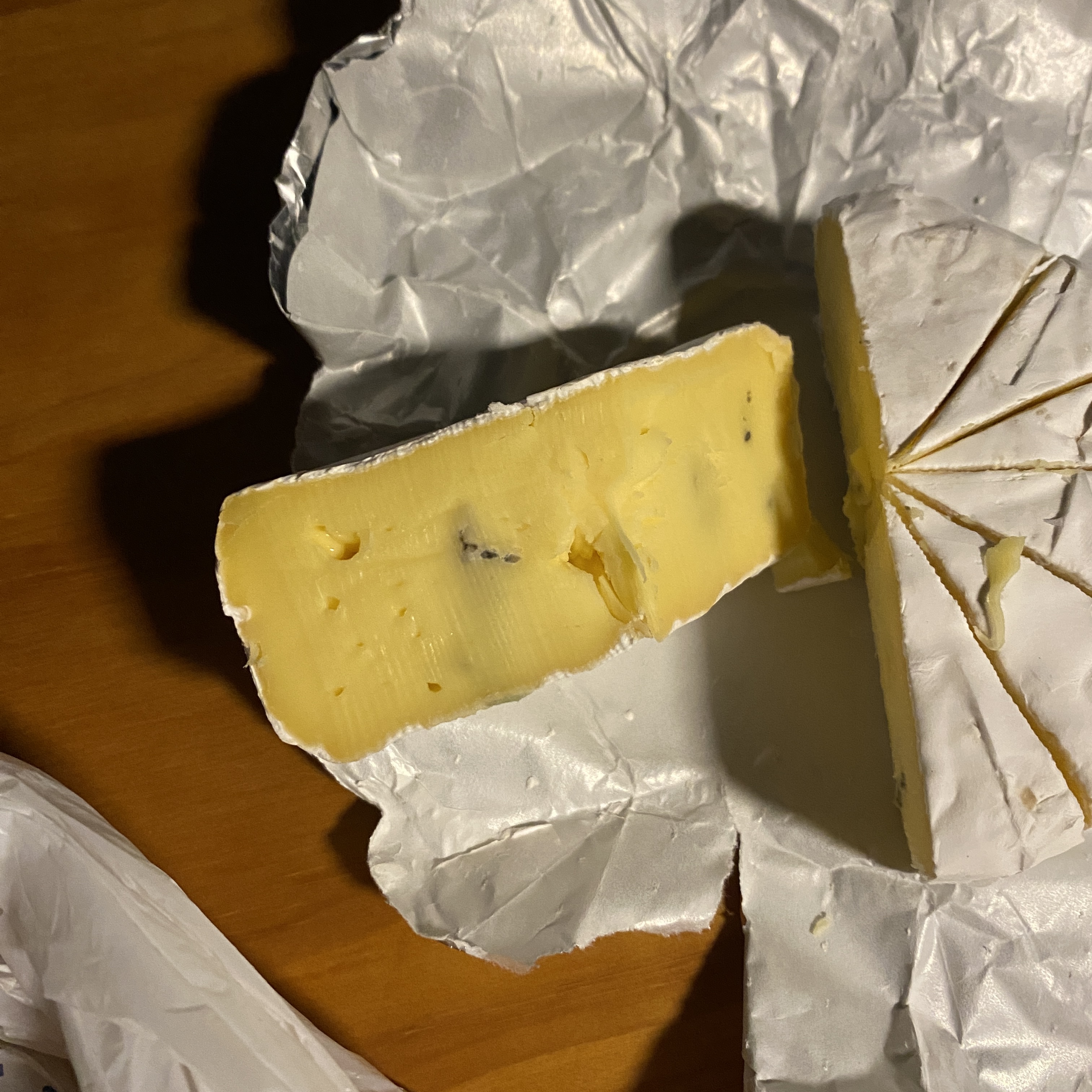 치즈를 잘라보니 안에 블루치즈가 보이네요!