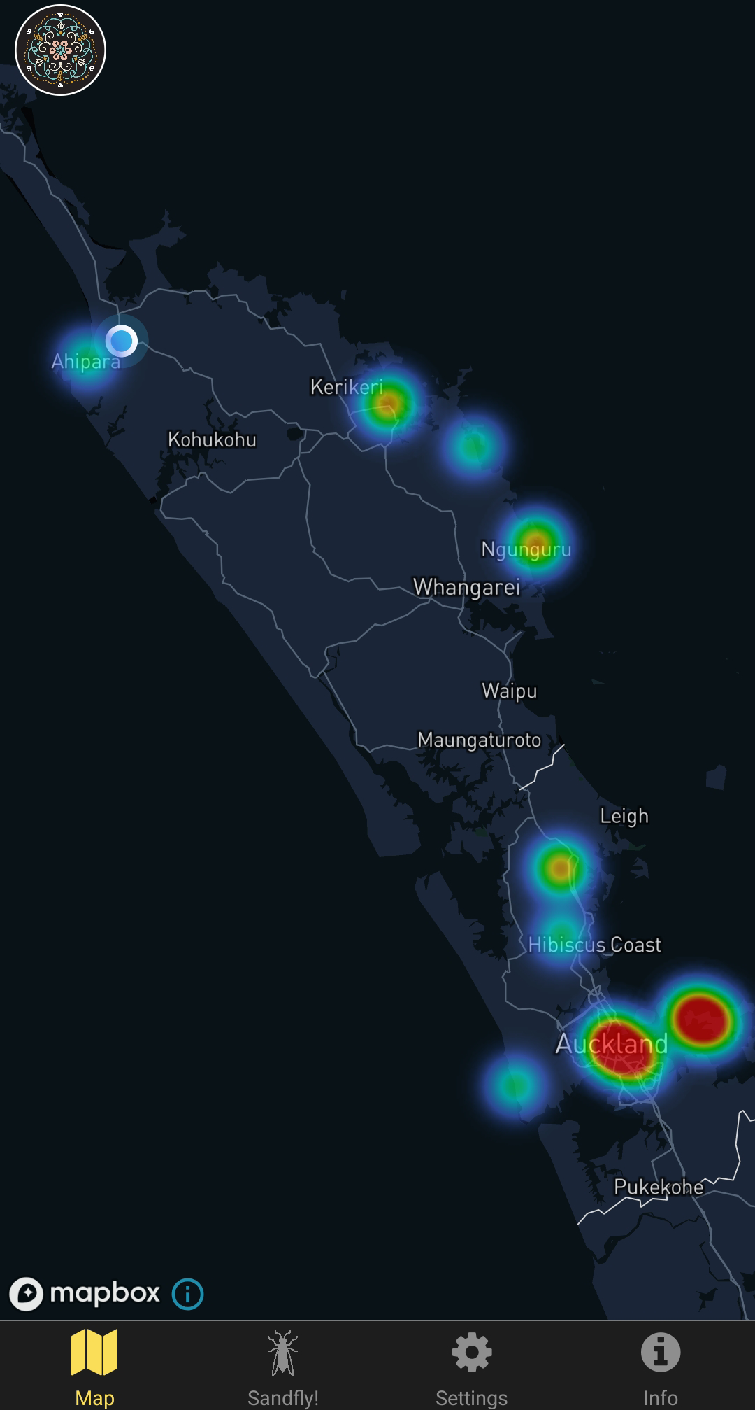 샌드플라이 어플로 확인해보니 제가 방문했던 피하비치, 라글란비치, 아히파라비치 모두 샌드플라이가 서식하고 있는 지역이었어요.