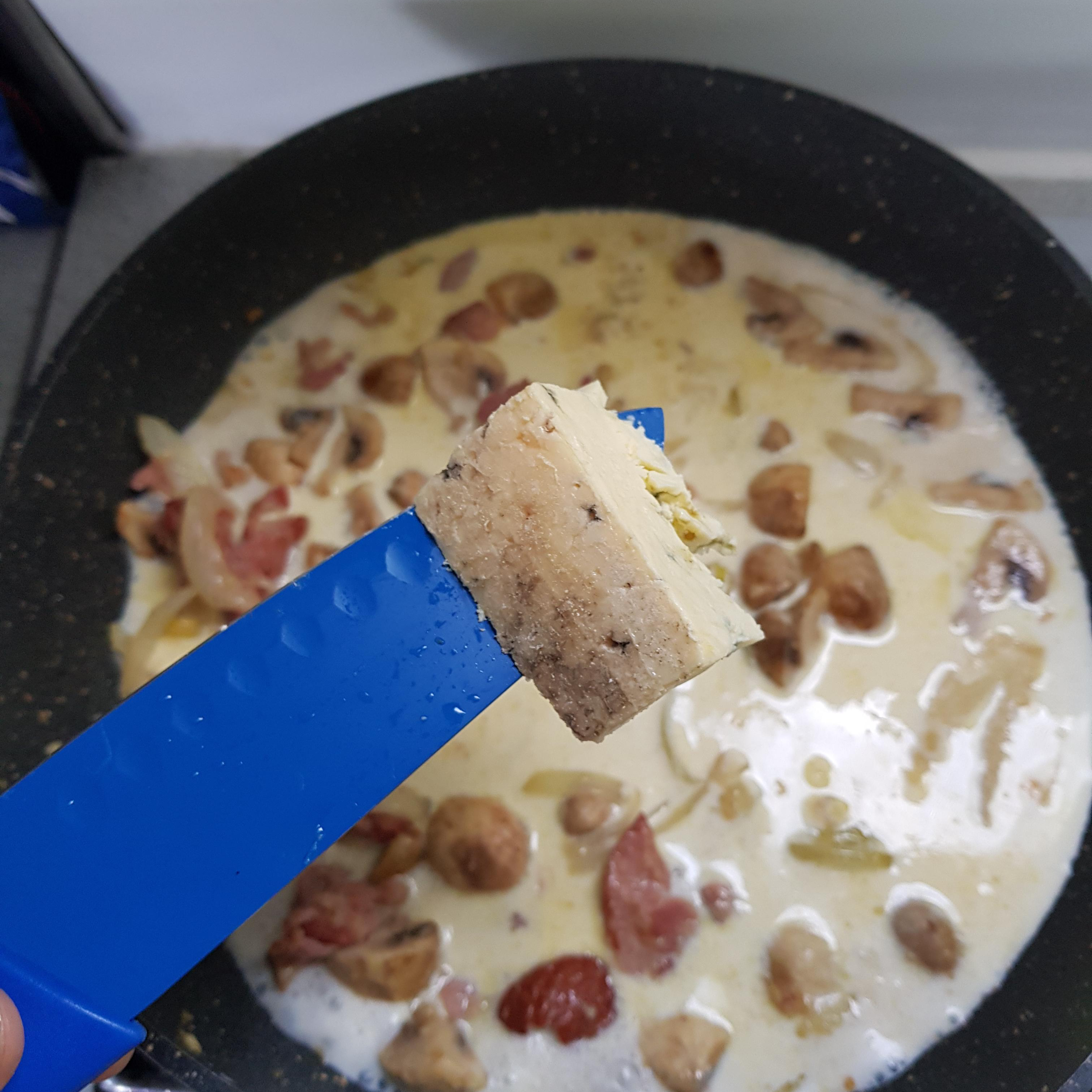 제일 마지막 순간에 블루치즈 한 덩이를 넣어 녹여줍니다.