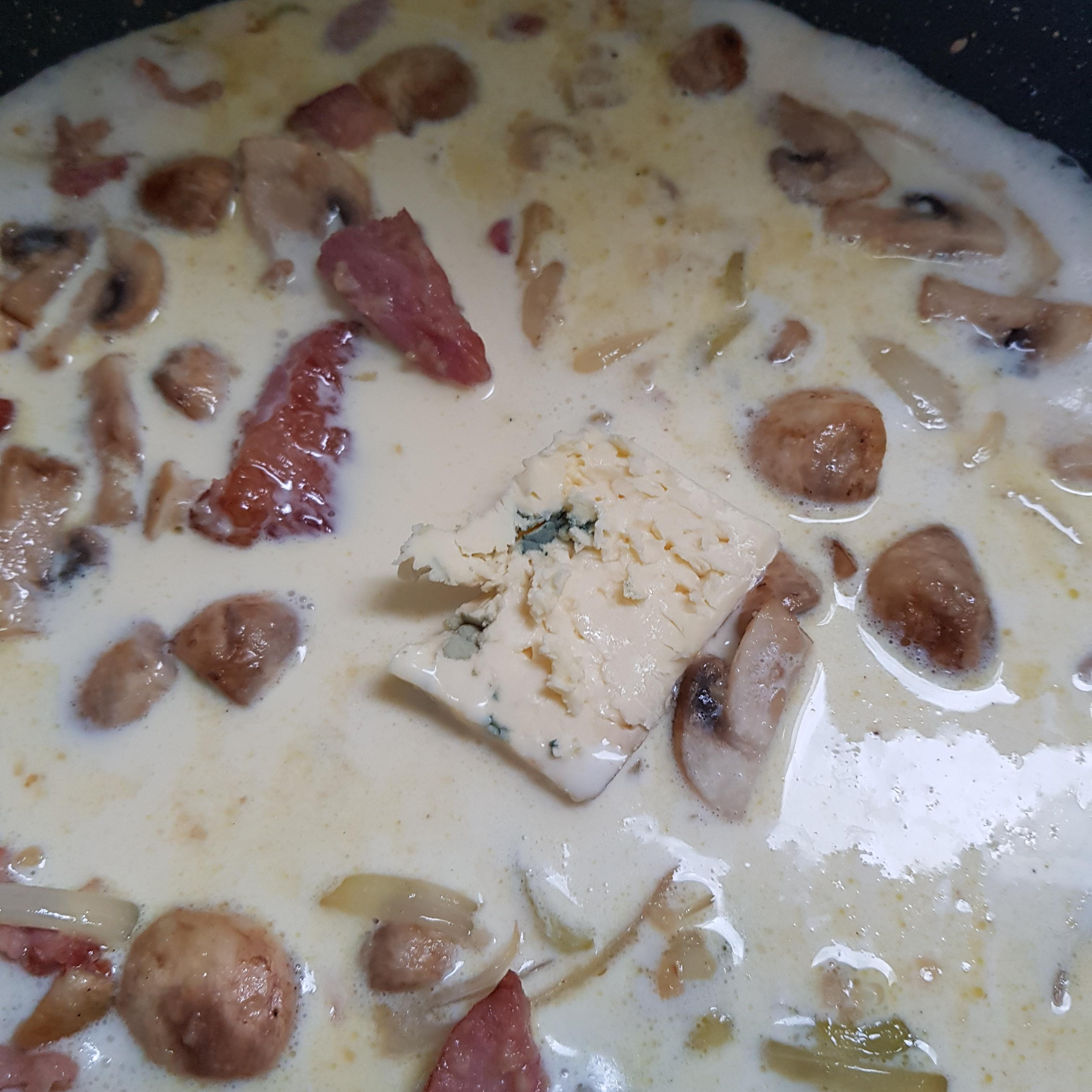 살짝만 끓여주면 풍미가득한 블루치즈 크림파스타 완성이에요!