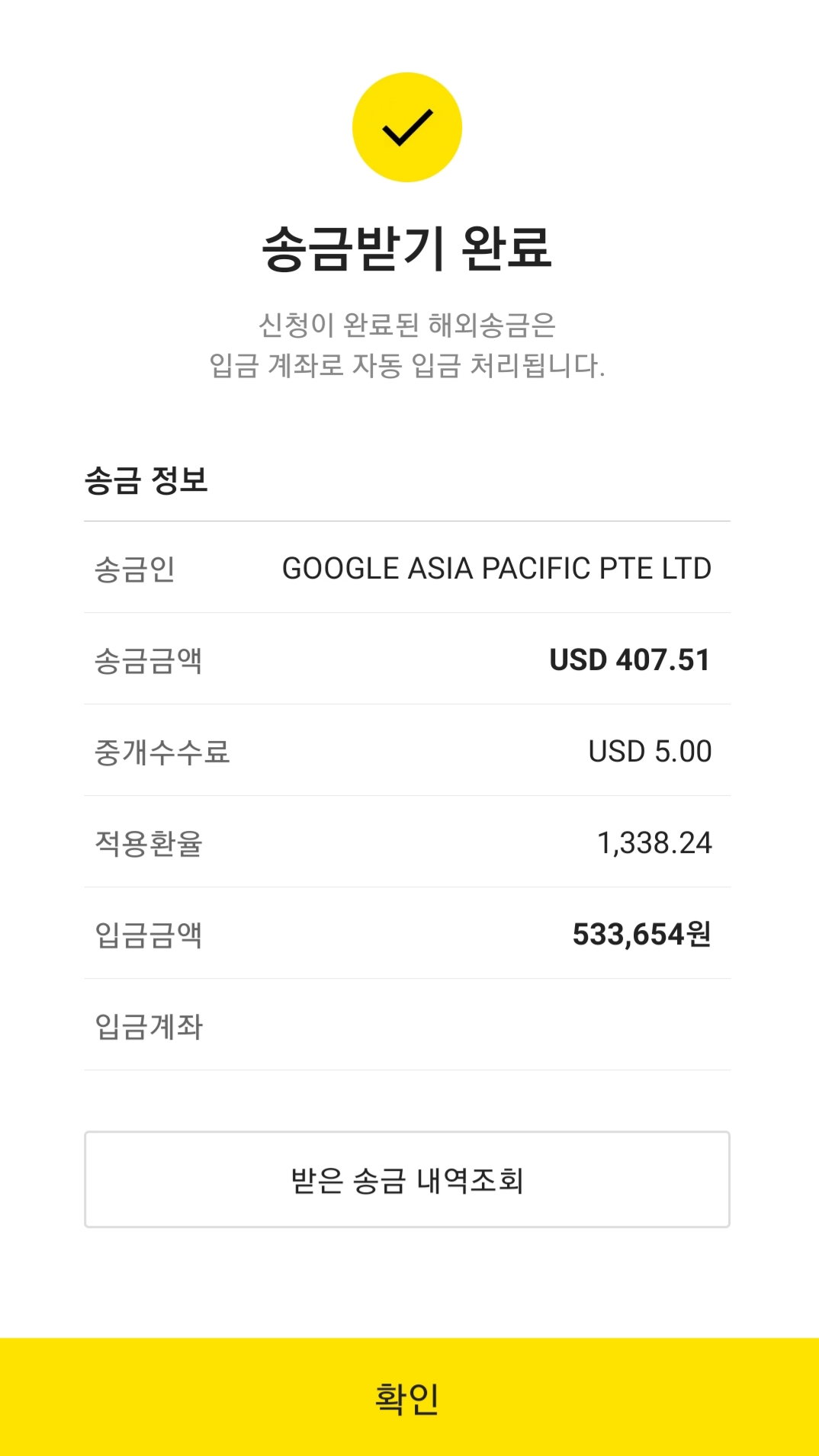 어떻게 보면 해외송금인데도 엄청 빠르게 진행되었습니다.