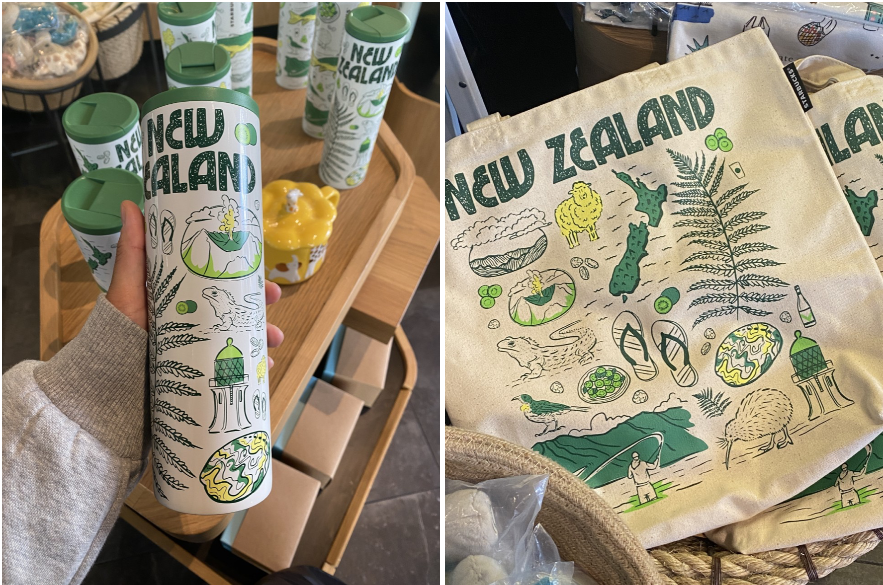 에코백과 시티컵, 텀블러에는 뉴질랜드 대표하는 일러스트가 그려져있는데, 너~무 귀여워요.