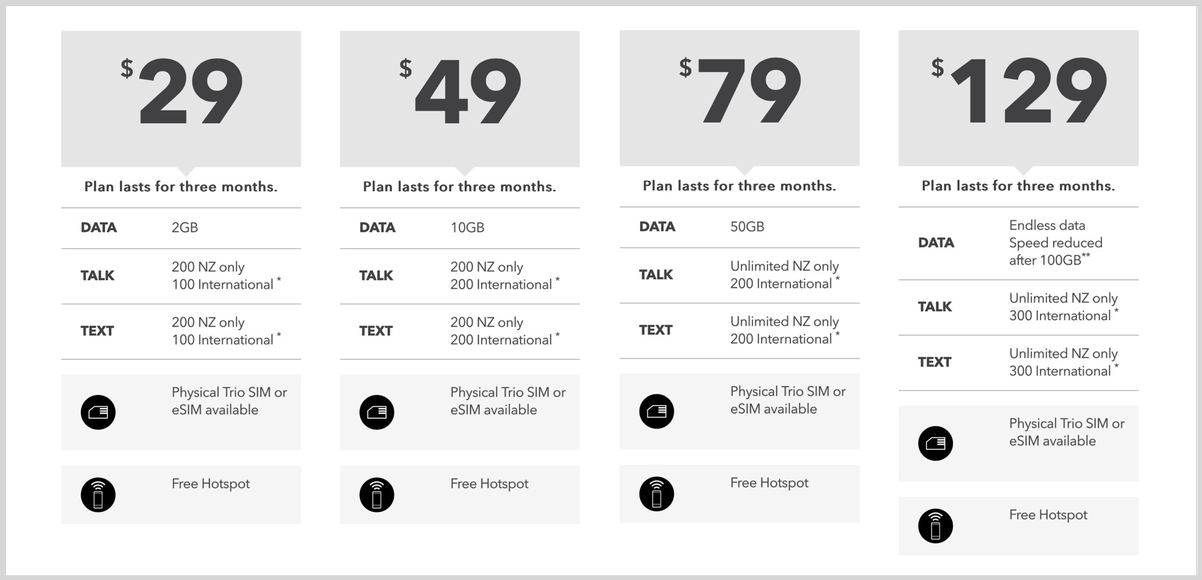 오클랜드 스파크 매장에 가서 트레블 유심을 산다면, (*무제한 데이터 요금 기준) $17이나 더 비쌉니다.