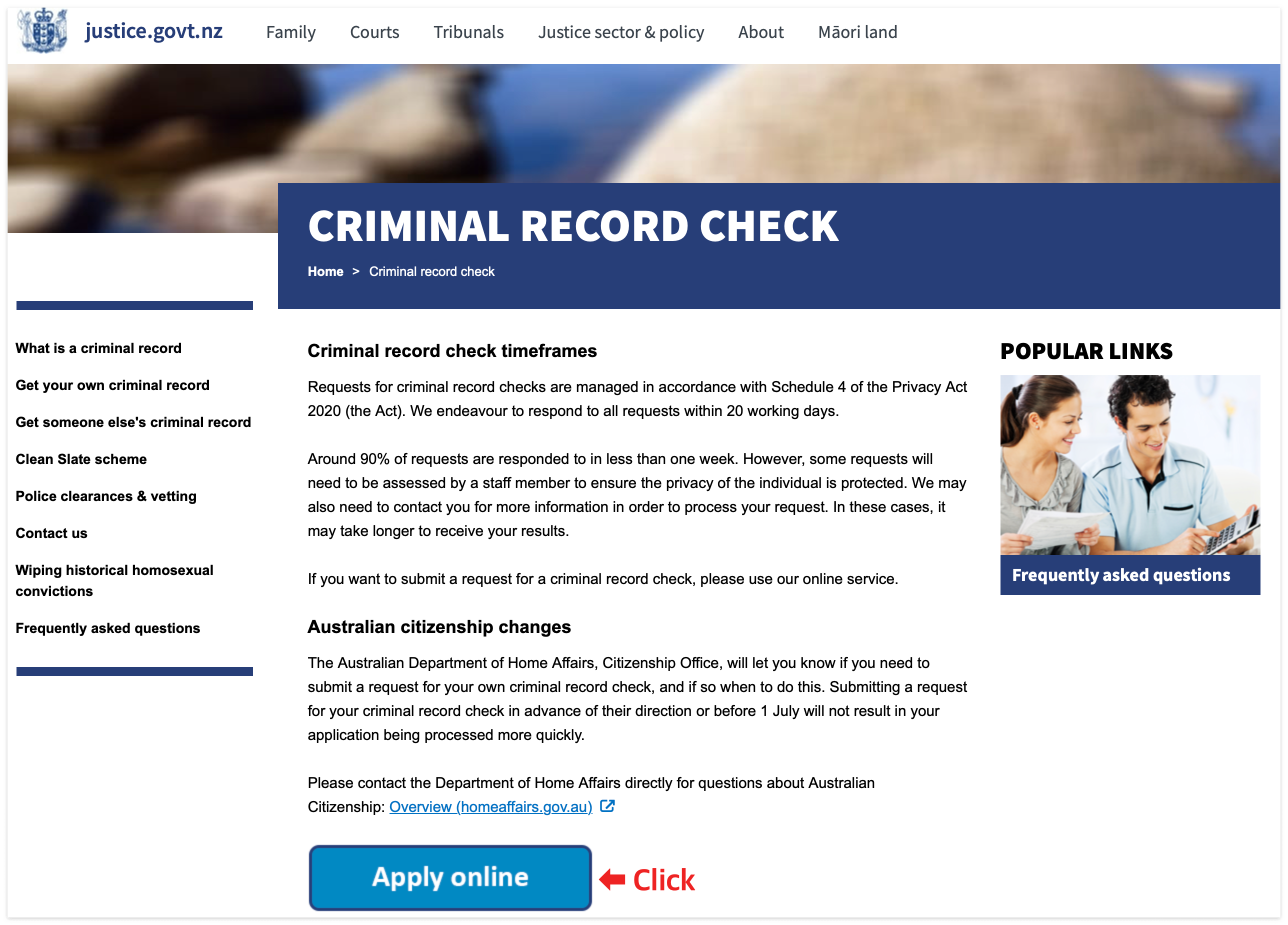 뉴질랜드 범죄 경력회보서는 하단 사이트에 접속하셔서 온라인으로 신청해야합니다.