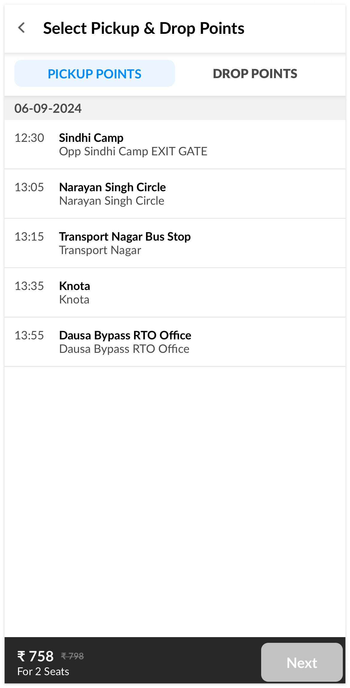 버스마다 픽업, 드랍포인트 선택할 수 있어요.