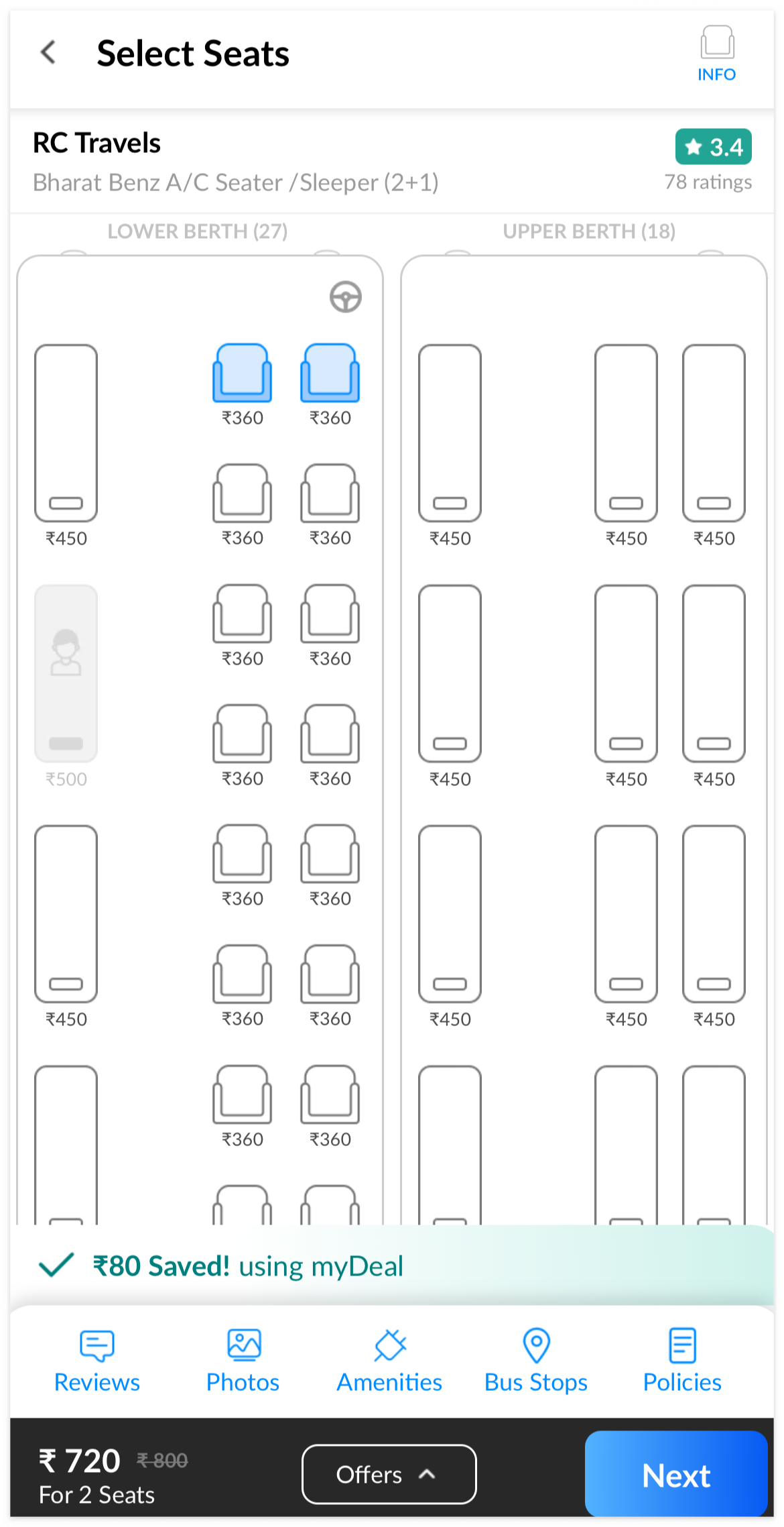 인도는 넓은 국토에 다양한 도시가 흩어져 있어 여행 중 도시간 이동이 꽤 많아요. 기차나 항공도 있지만, 버스는 합리적인 가격에 유연한 시간 선택이 가능해서 특히 장거리 여행자들에게 인기가 많습니다. 그중에서도 가장 많이 사용하는 예약 플랫폼이 바로 Make My Trip 어플이에요. 영어 지원은 물론, 실시간 좌석 확인부터 다양한 버스회사 비교까지 가능해서 처음 인도 여행을 가는 분들도 쉽게 사용할 수 있는 인도 여행 필수 앱입니다. 인도여행에서 지역을 이동할 때, 기차보다는 버스가 좀 더 비싼 대신 버스에는 좀 더 프라이빗한 룸이 있고, 시간대도 더 선택지가 많아서 자주 이용했어요. 처음엔 버스만 예약하다가 나중엔 기차도 Make my trip 어플로 했답니다.