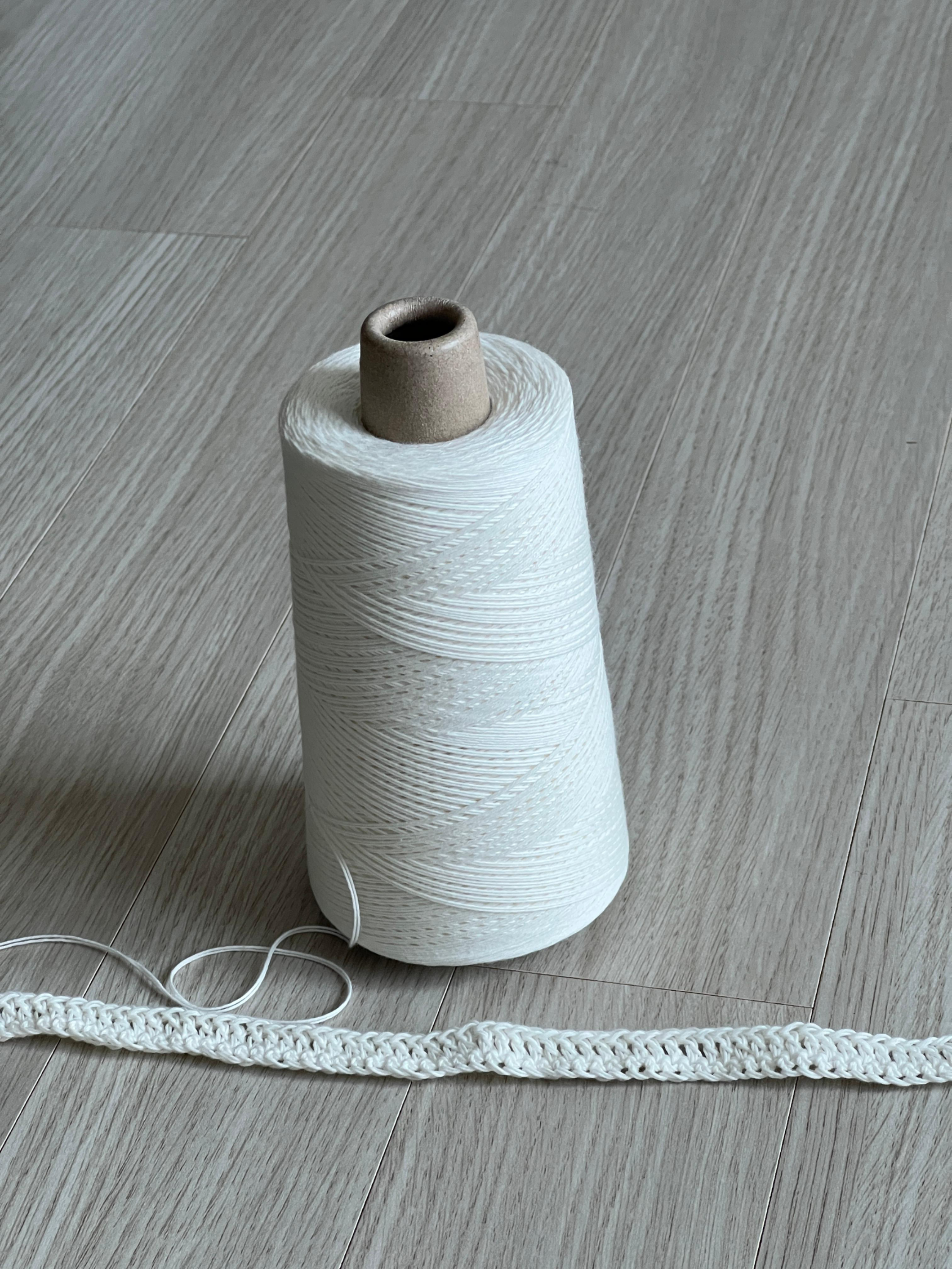 이번엔 코바늘로 탑다운 형식의 반팔 니트를 떠보려고 2합 100g 실을 2콘(총 200g) 주문했어요. 한 콘당 대략 300m 정도라고 하니, 두 콘이면 600m 정도 되는 양이에요. 실제 떠보니까 L사이즈 반팔 니트를 만들기엔 200g이 조금 부족했고, 300g 정도 있어야 딱 맞겠더라구요. 그 대신 지금은 민소매 형태의 니트 베스트로 방향을 틀어서 만들고 있어요. 뜨는 동안 실이 얇아서 정교하게 모양을 잡을 수 있었고, 빛을 받으면 실 표면이 은은하게 반짝여서 실력 이상의 결과물이 나오는 기분이 들었습니다.